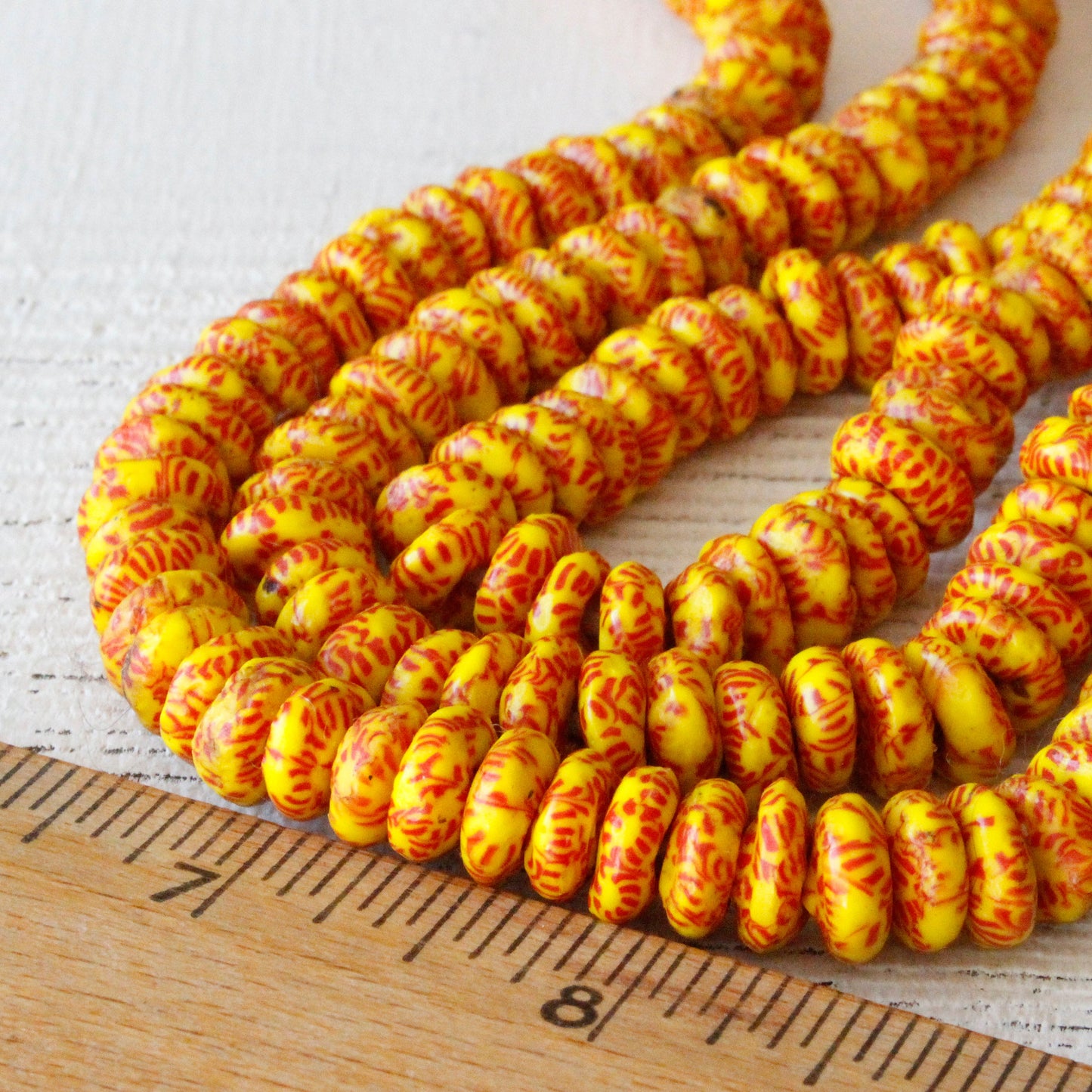 Krobo Donut Beads From Ghana Africa - Yellow Red