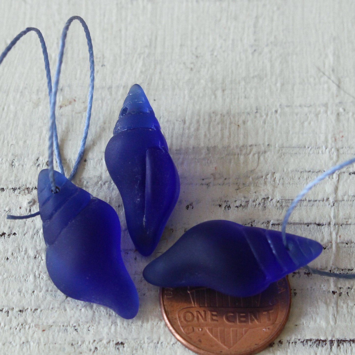 12x26mm Frosted Glass Conch Shell Beads - Cobalt Blue - 2 Beads