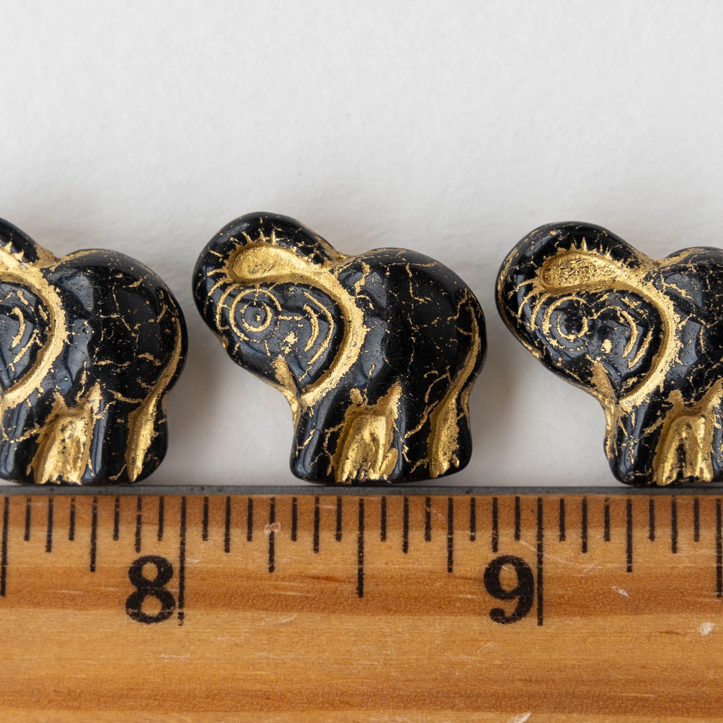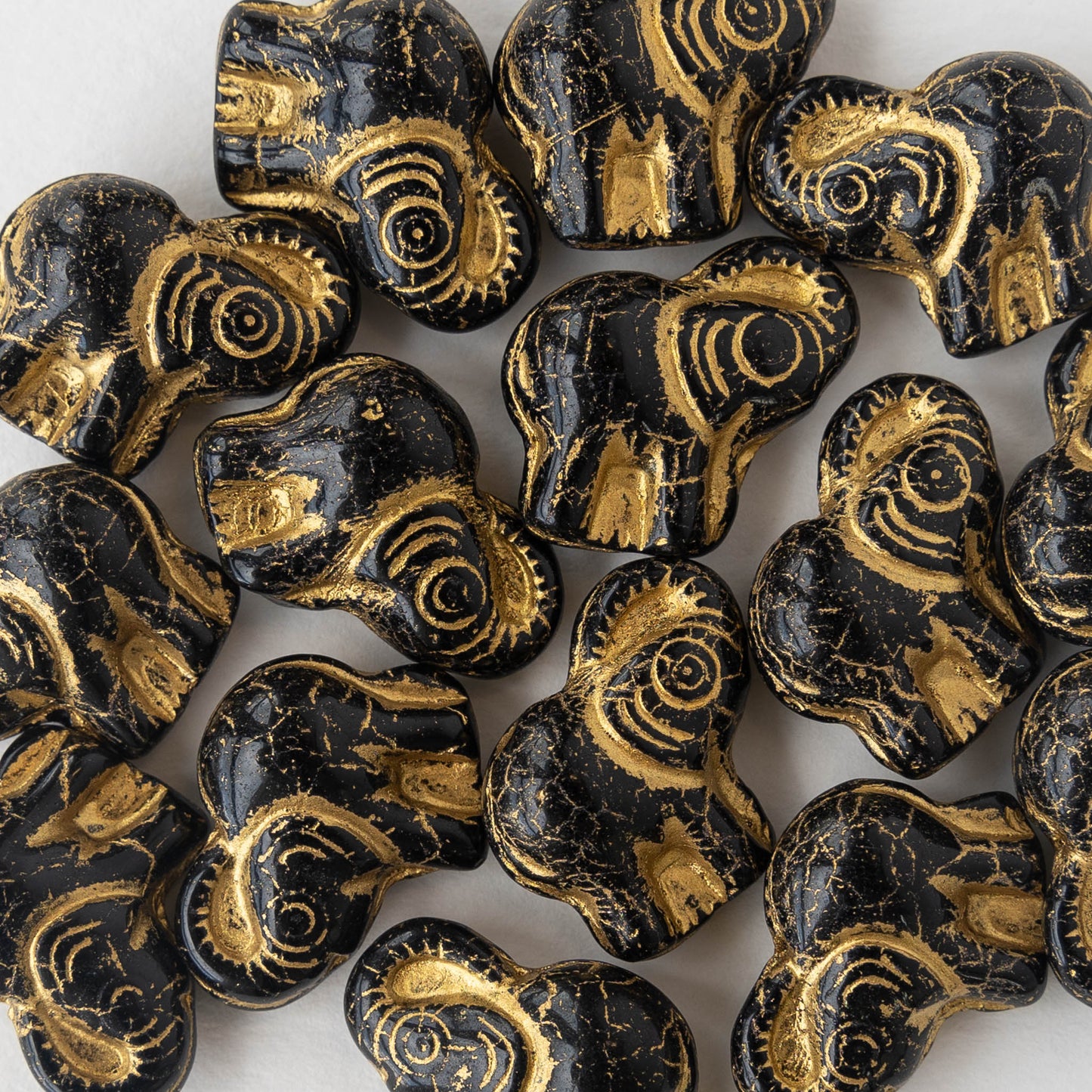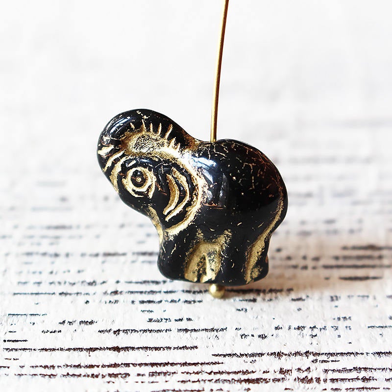 Glass Elephant Beads - Black with Gold Decor - Choose Amount