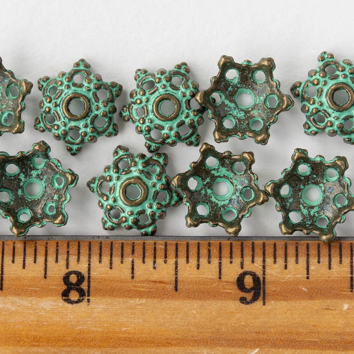 5x14mm Bali Style Bead Caps - Brass Patina - 2, 6, or 12 beads