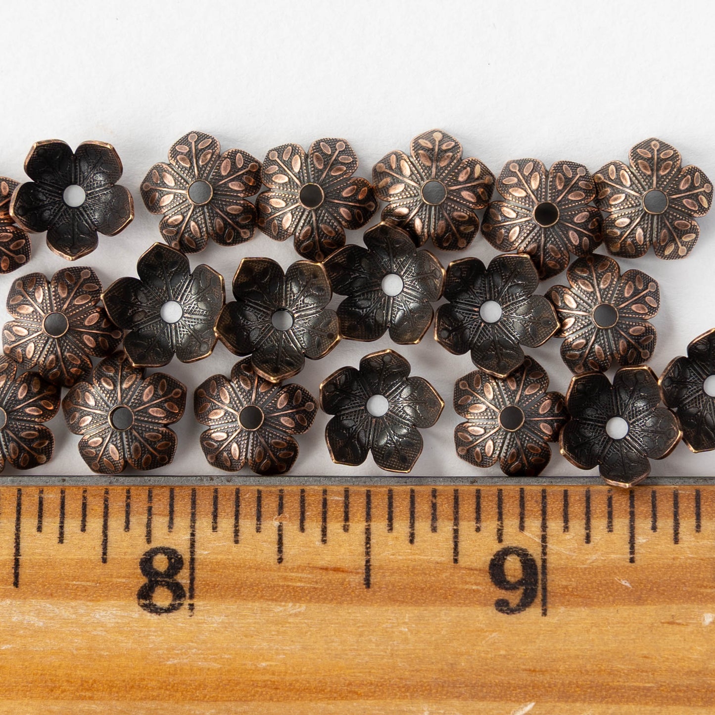 5x9mm Flower Bead Caps - Antiqued Copper - 2, 6, or 12 beads
