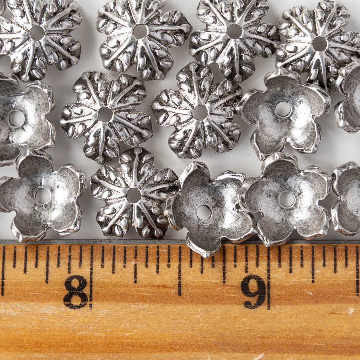 6x14mm Leaf Bead Caps - Antique Silver - 2, 6, or 12 beads