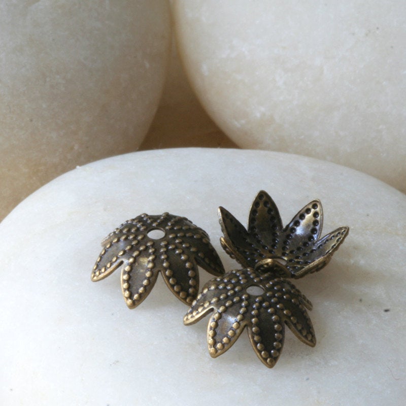 9mm Antiqued Brass Flower Bead Cap - 10, 20 or 30 Pieces