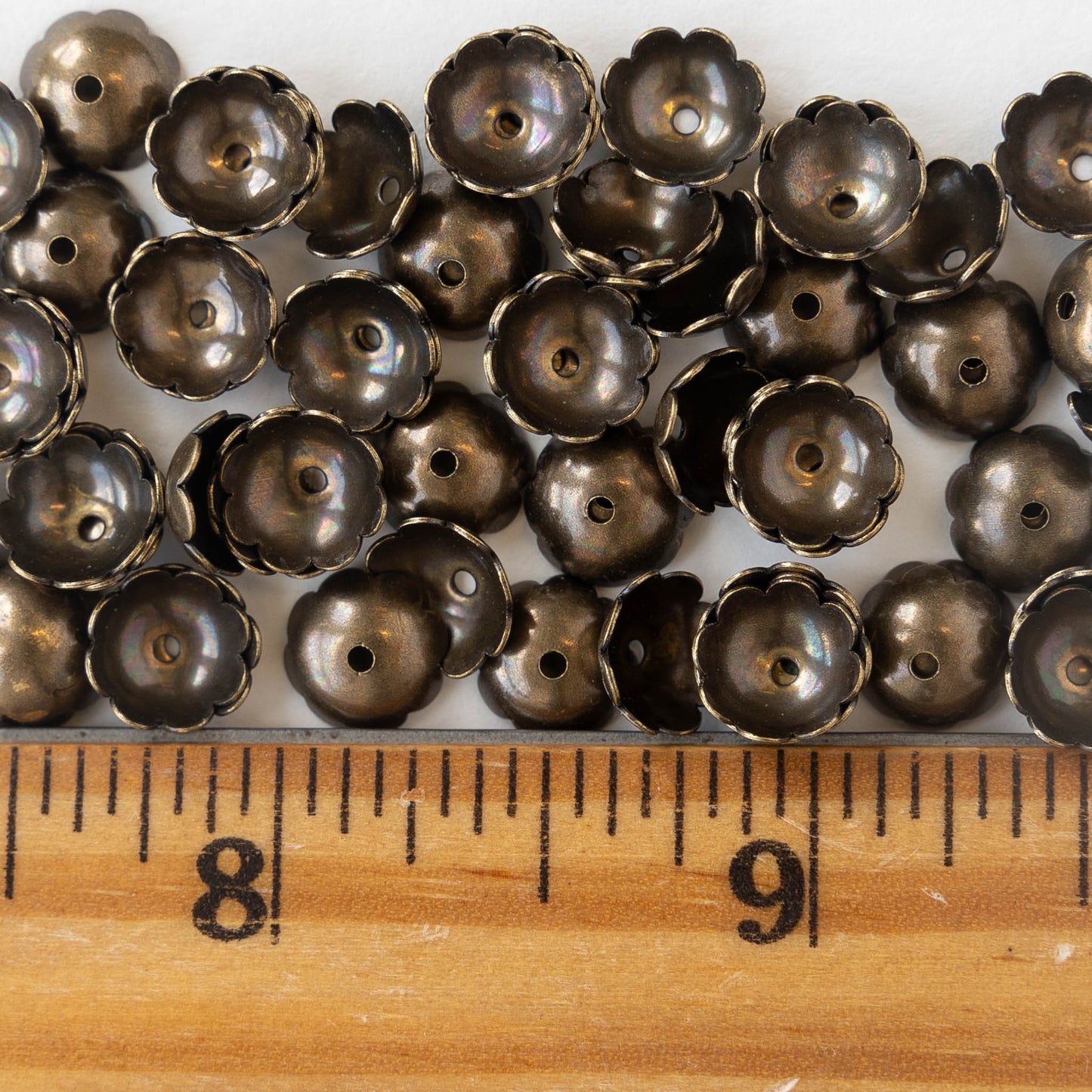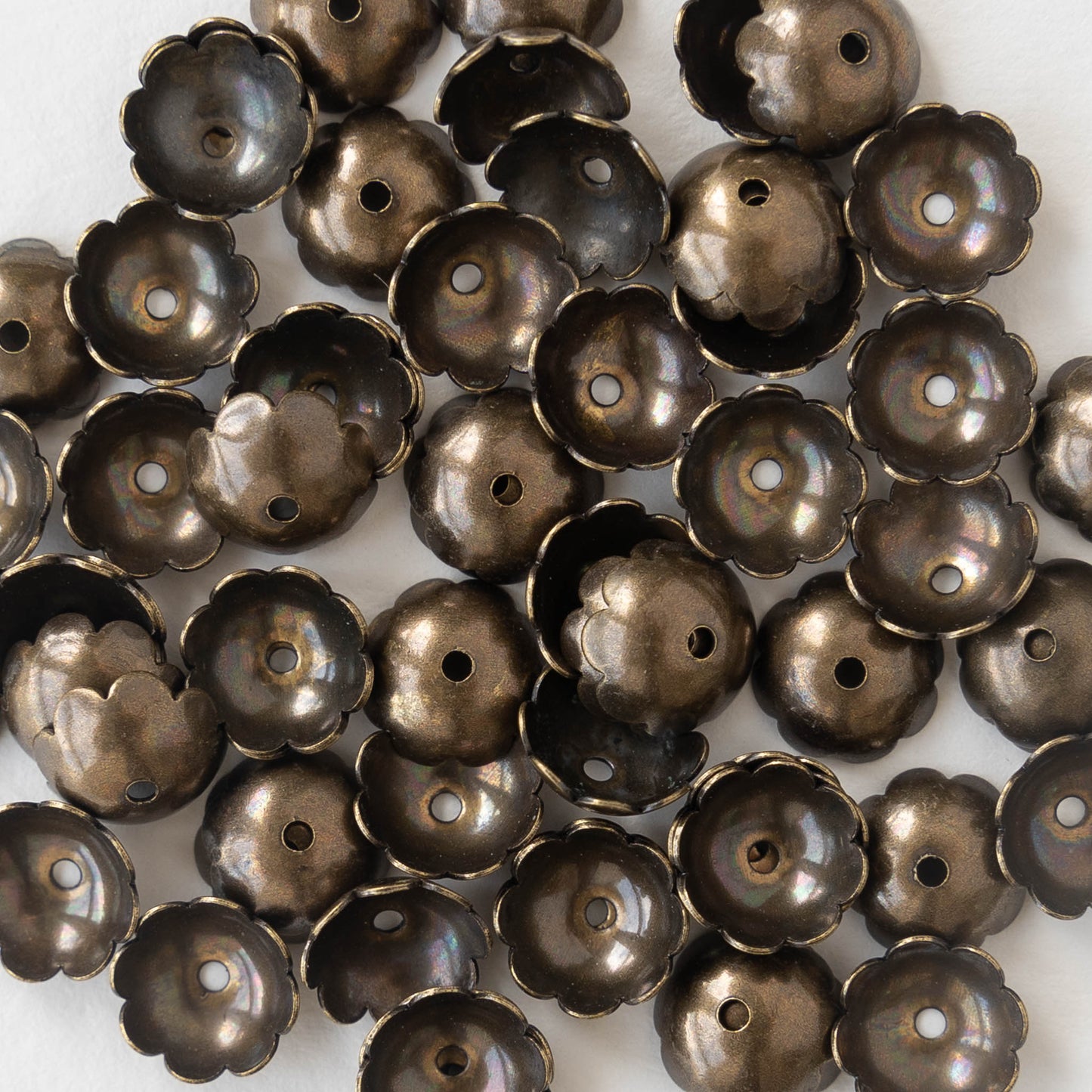 9mm Antiqued Brass Bead Caps - 10, 20, or 30 Pieces