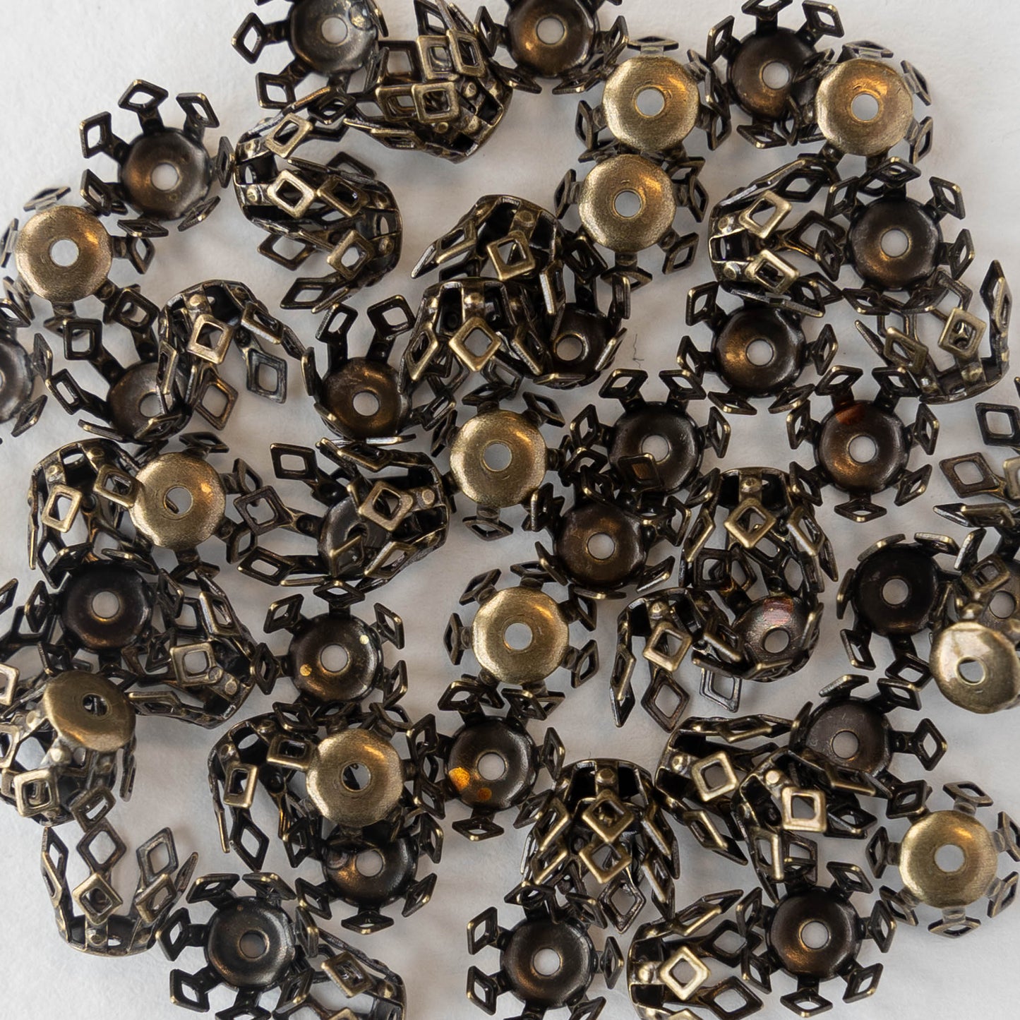 9mm Antiqued Brass Diamond Designed Bead Caps - 20 Pieces