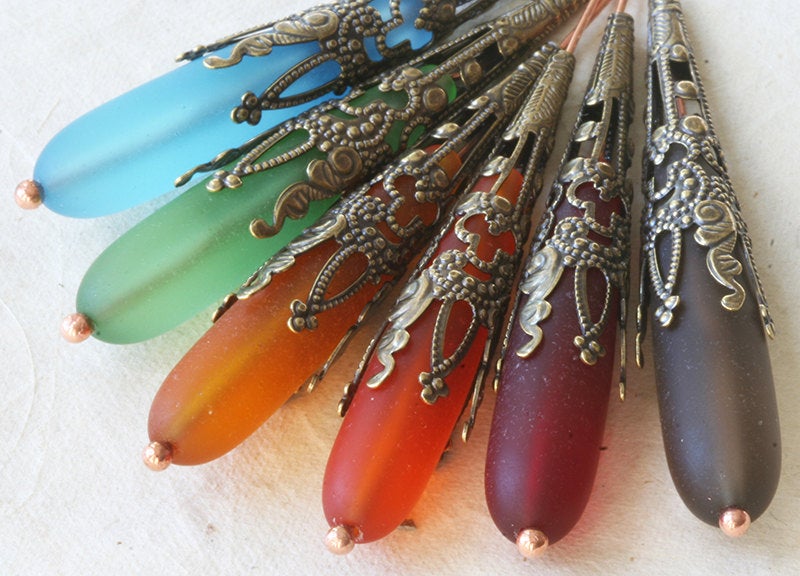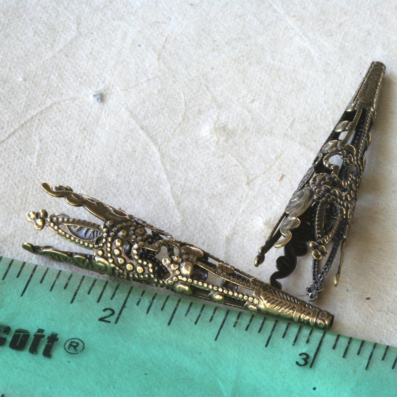 40mm Long Antiqued Brass Bead Caps - 10 or 30 Pieces