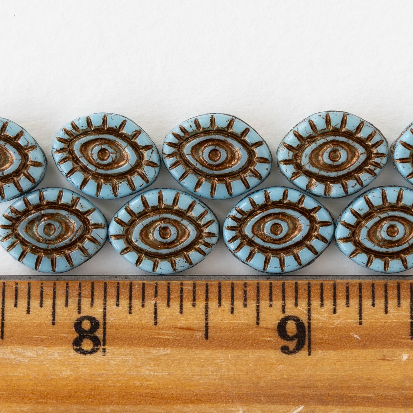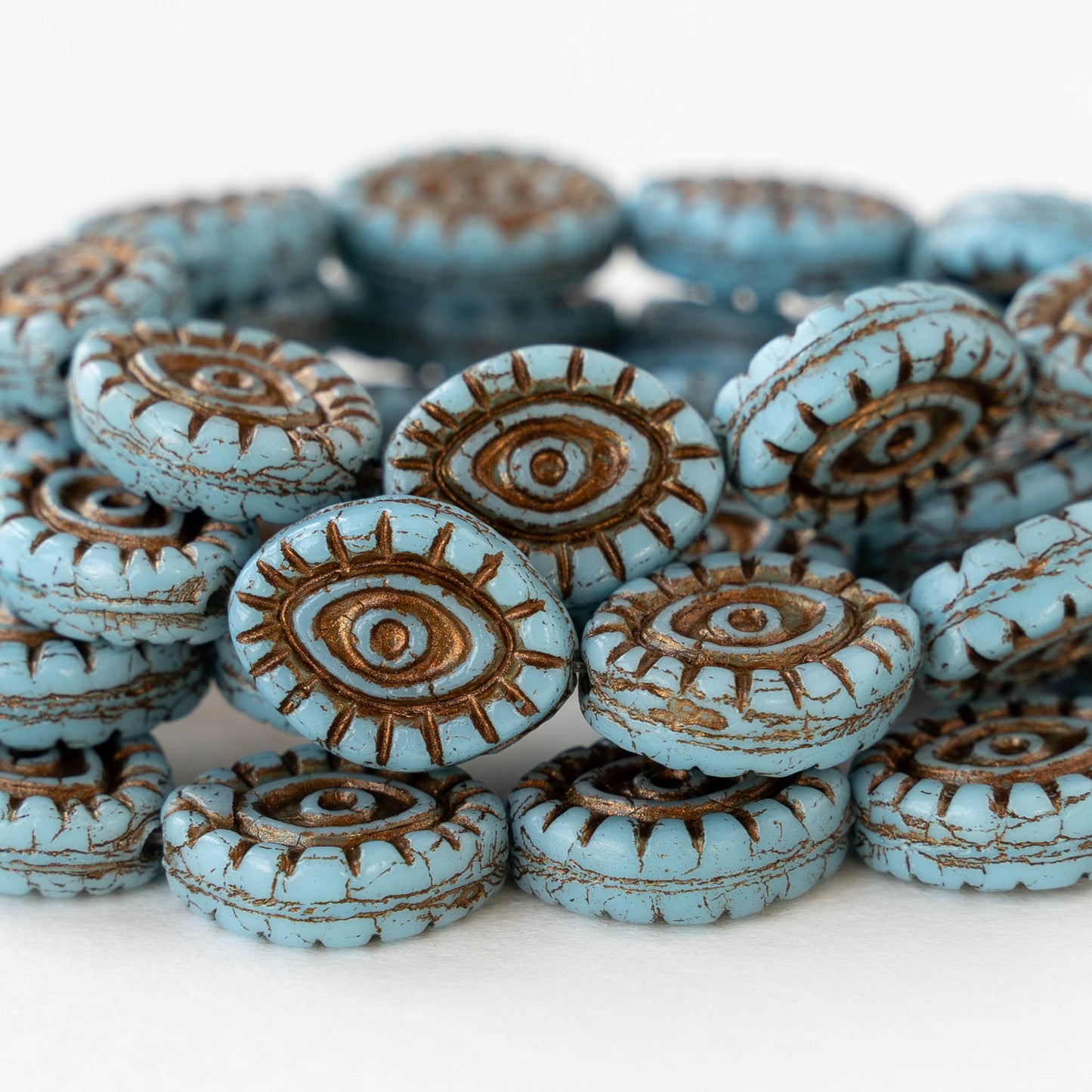 11x14mm Eye Beads - Opaque Light Blue with a Bronze Wash - 4 or 8 Beads