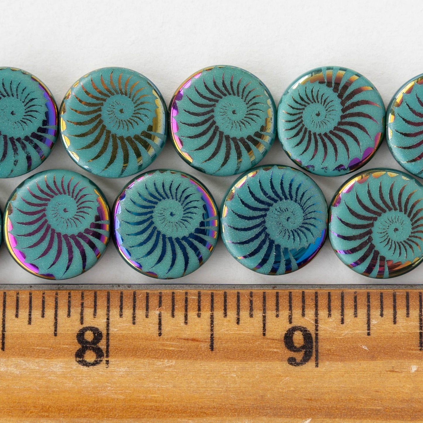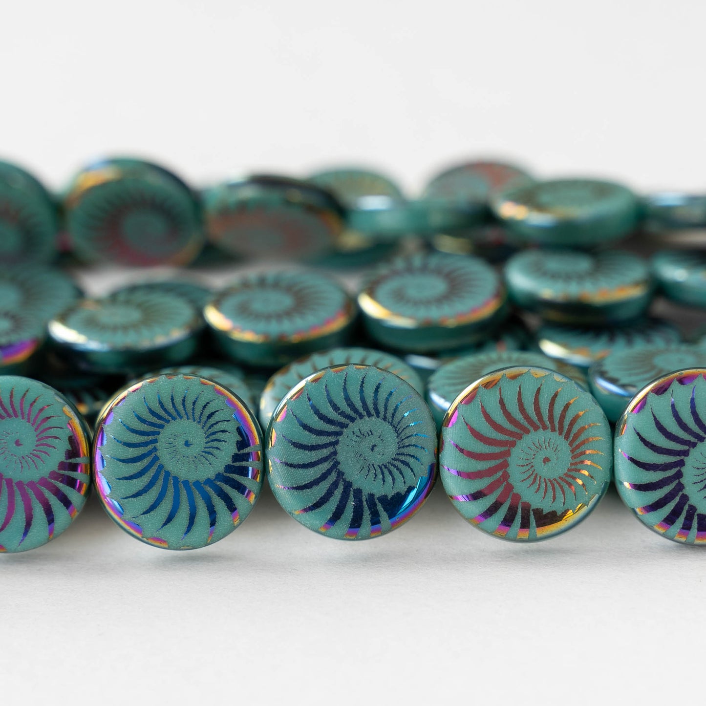 All available inventory for 14mm Coin Beads - Turquoise Iris Spiral - 8 beads has been added to the cart.