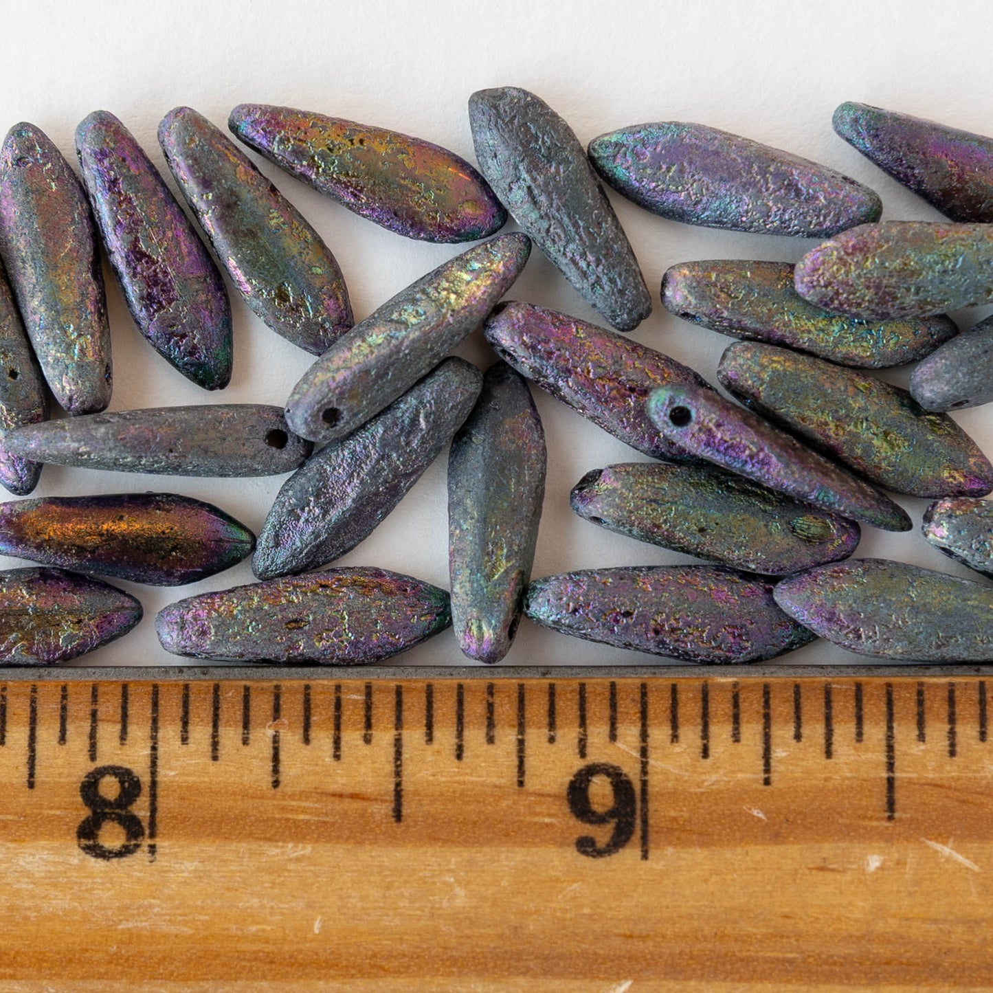 All available inventory for 16mm Glass Dagger Beads - Etched Blue Iris - 25 Beads has been added to the cart.