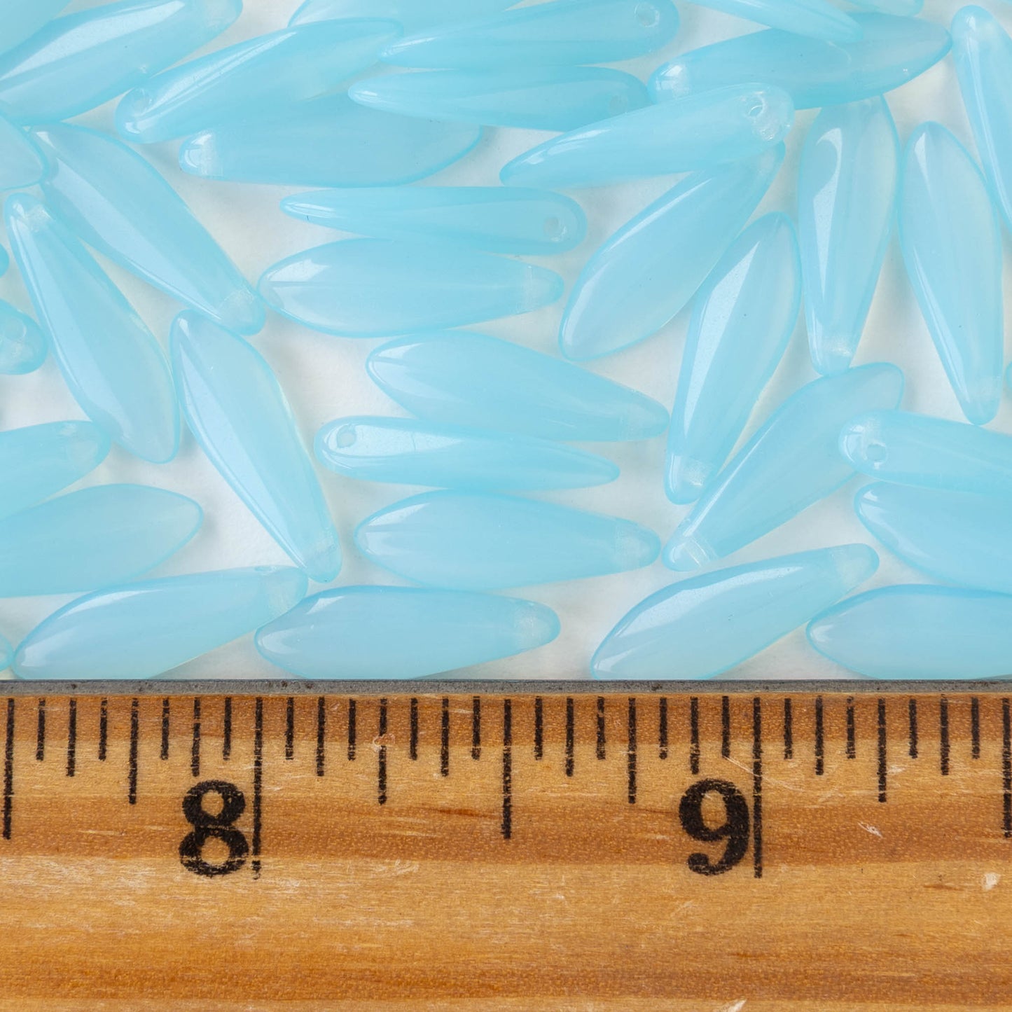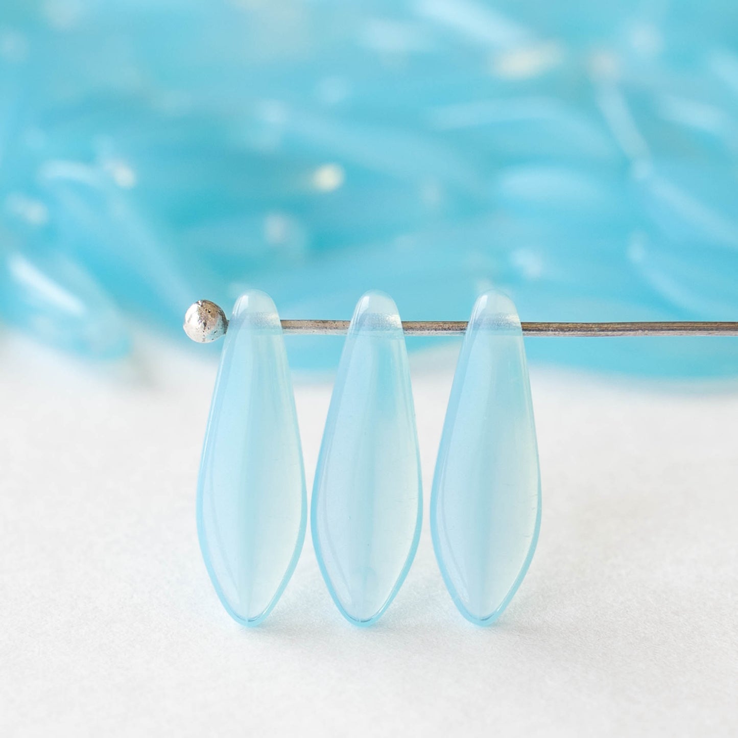 16mm Glass Dagger Beads - Opaline Light Blue - 25 or 50 beads