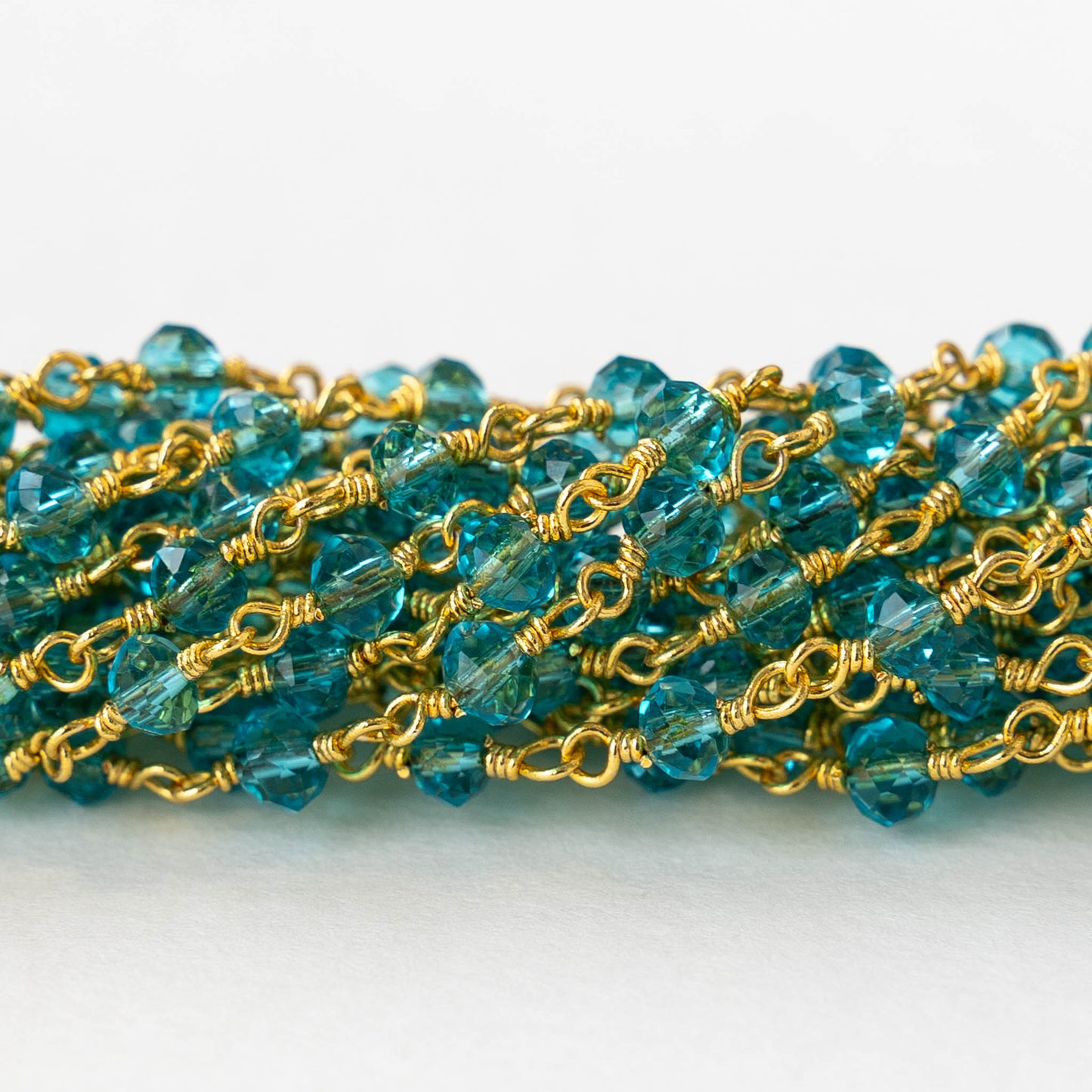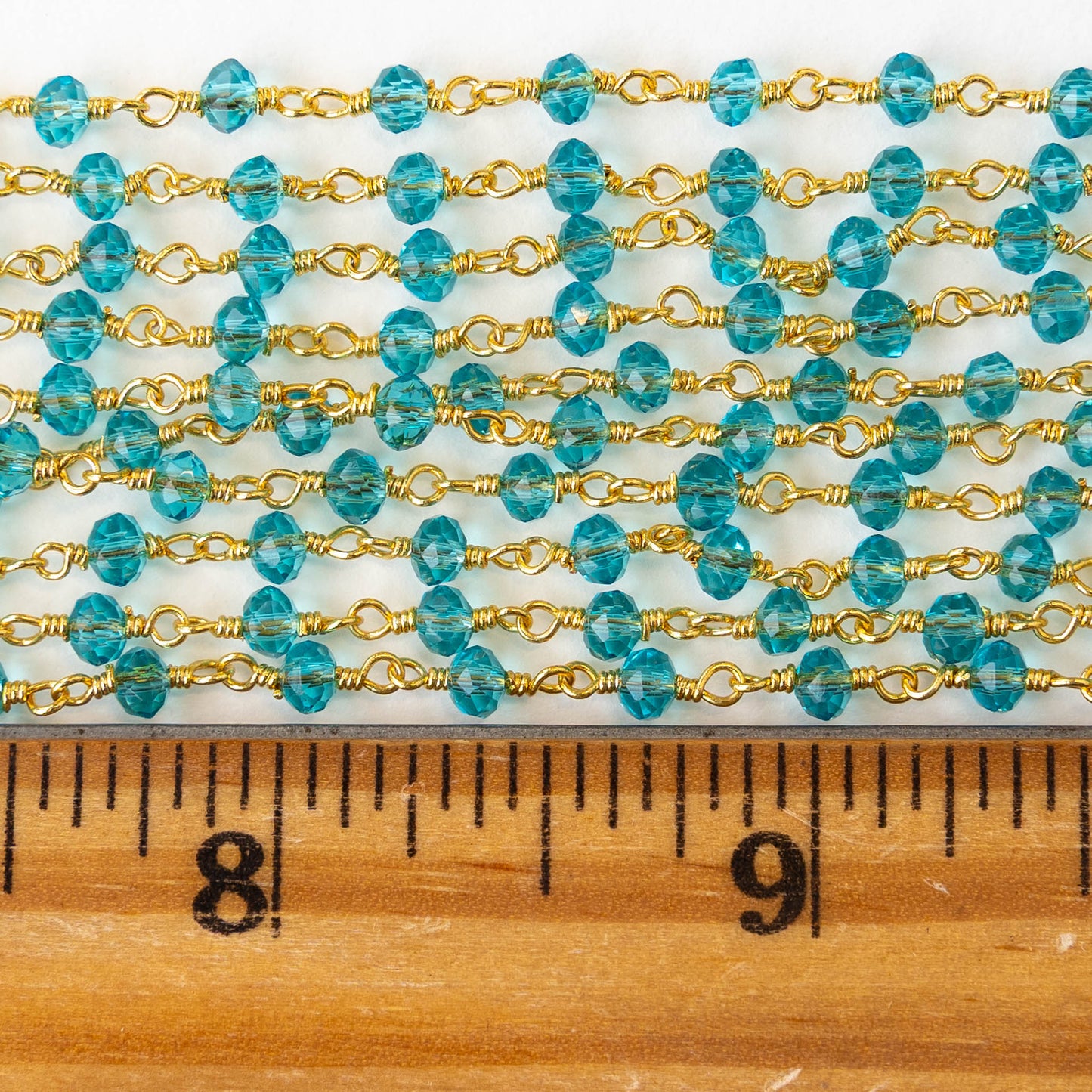 Faceted Bead Chain - Aqua Crystal Rondelles - Priced by the inch