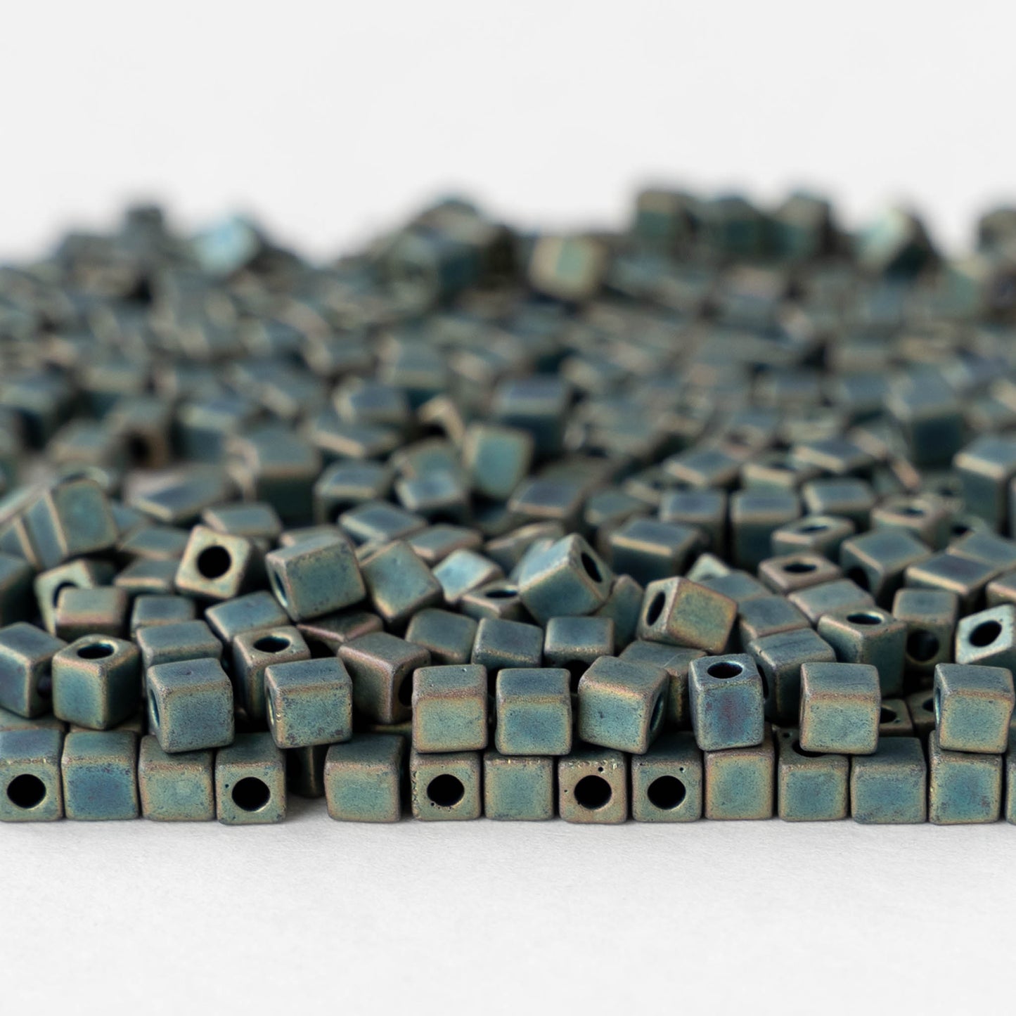 3mm Miyuki Cube Beads - Matte Metallic Patina Iris - 10 or 30 grams