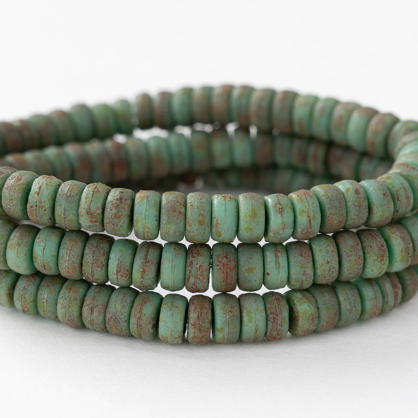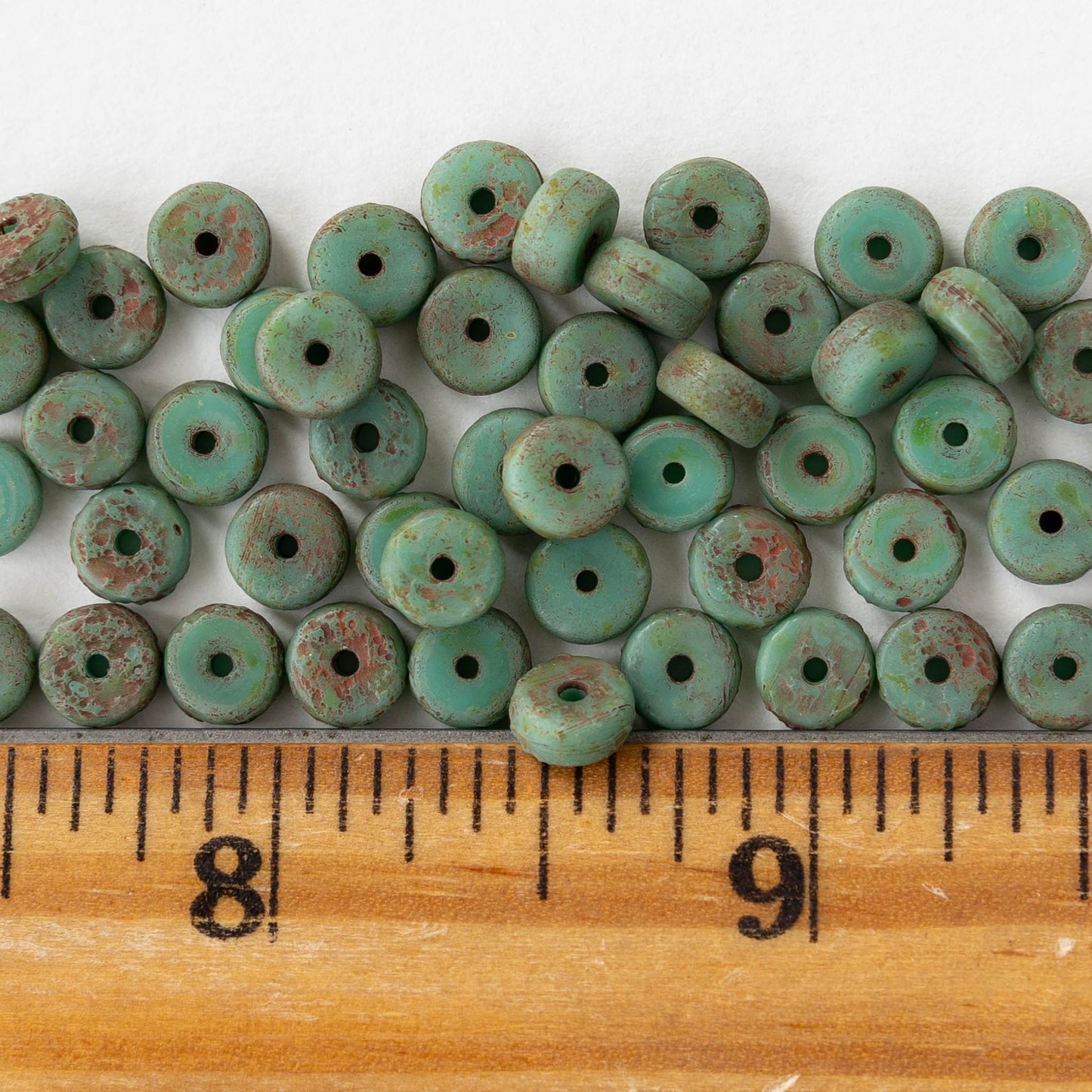 3x6mm Glass Heishi Beads - Etched Turquoise with Red Wash - 25 beads