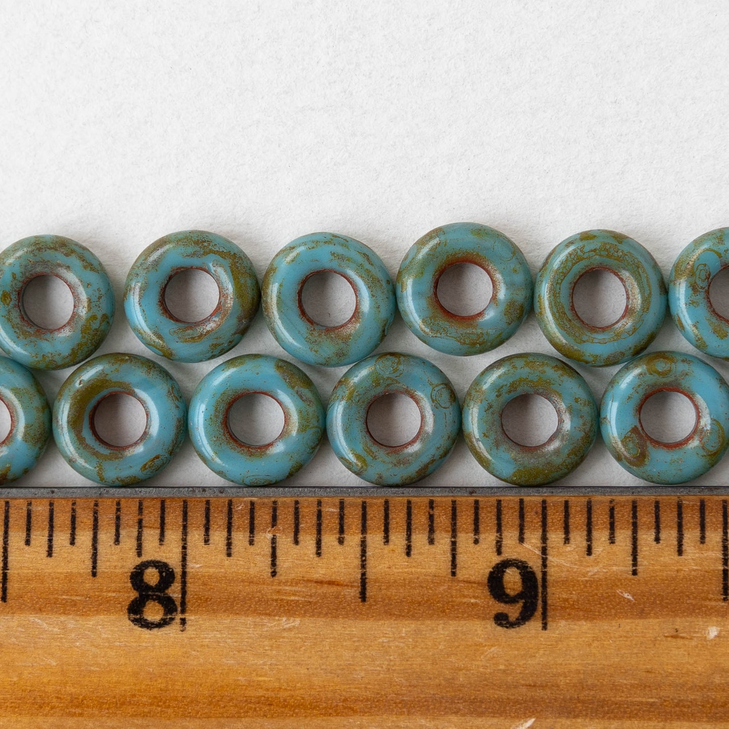10mm Glass Ring Beads - Opaque Turquoise Travertine - 20 Beads