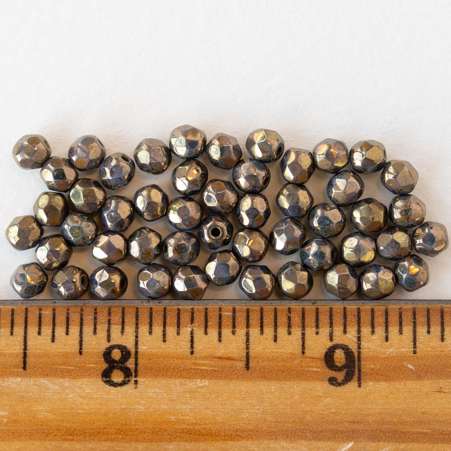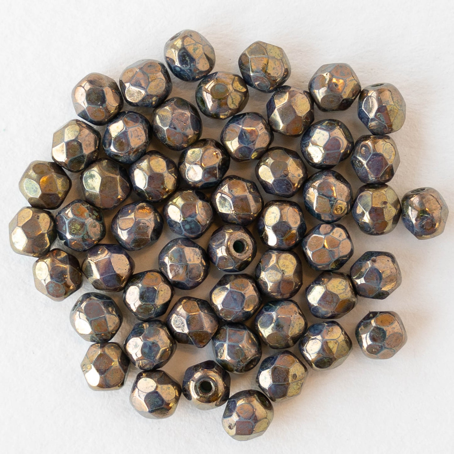 4mm Round Faceted Glass Beads - Opaque Green with Gold Luster - 50 Beads