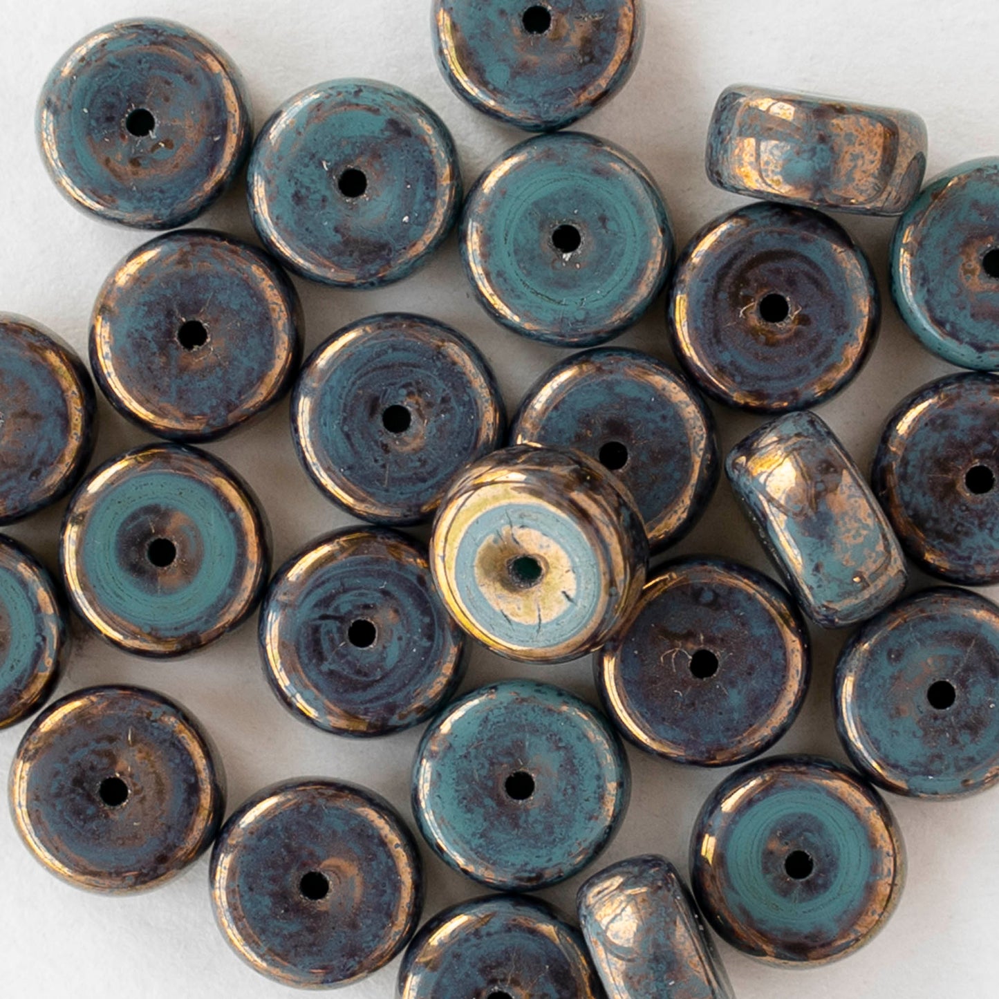 4x8mm Glass Heishi Beads - Tiffany Green Bronze - 10 or 20 beads