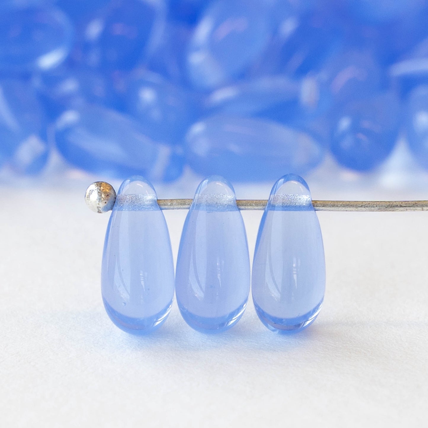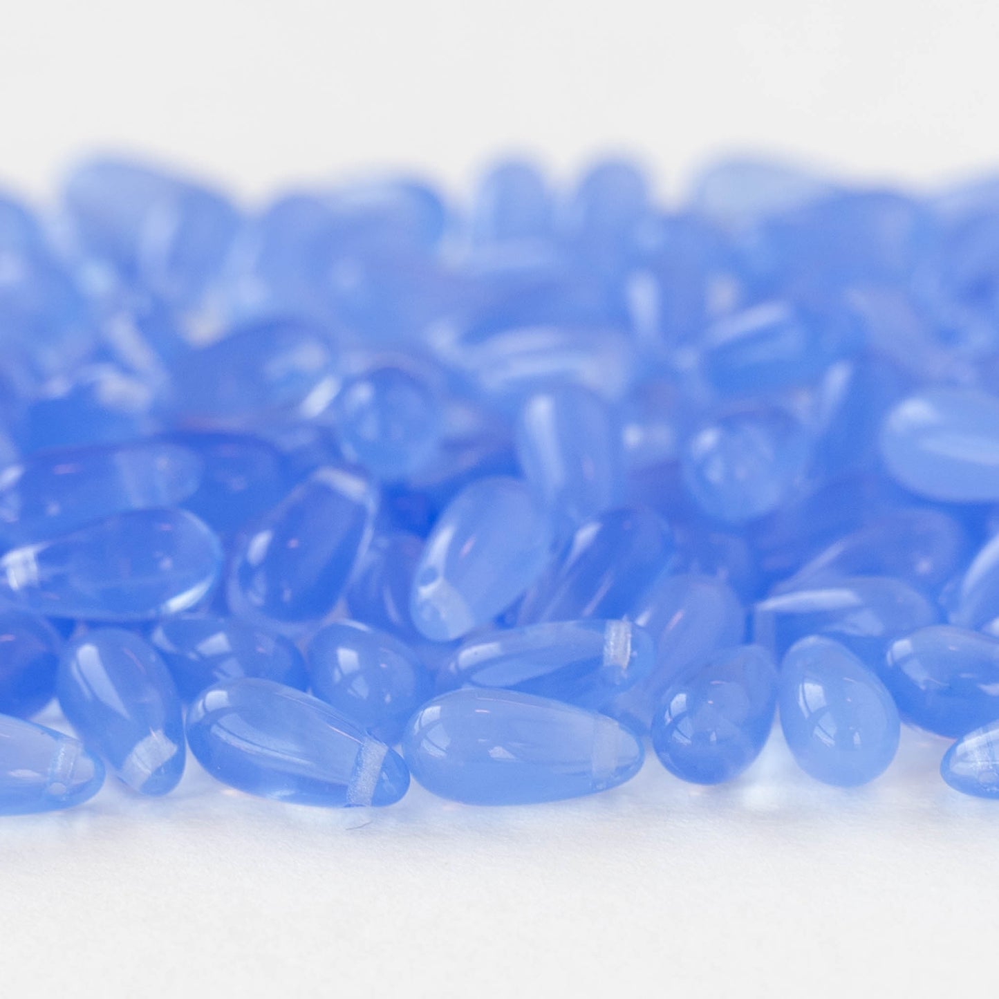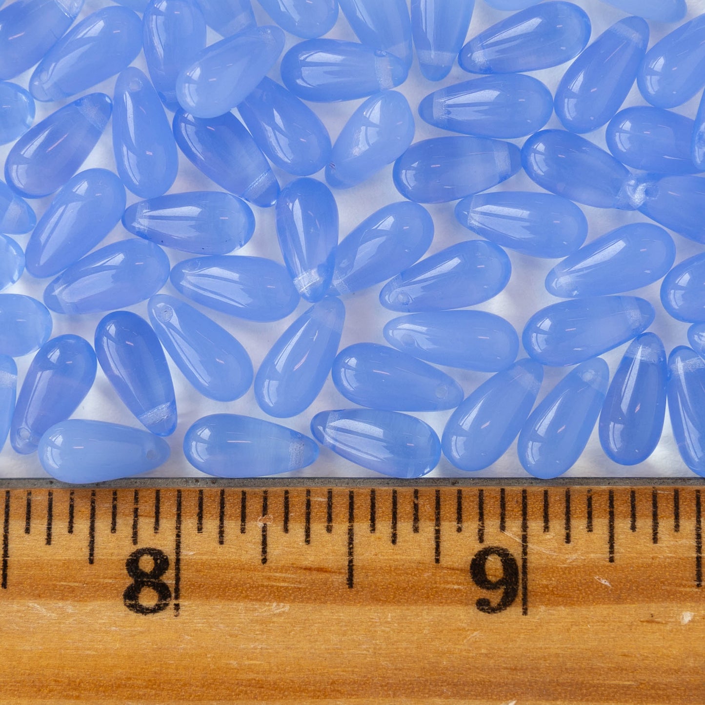 5x12mm Glass Teardrop Beads - Cornflower Blue Opaline - 50 beads