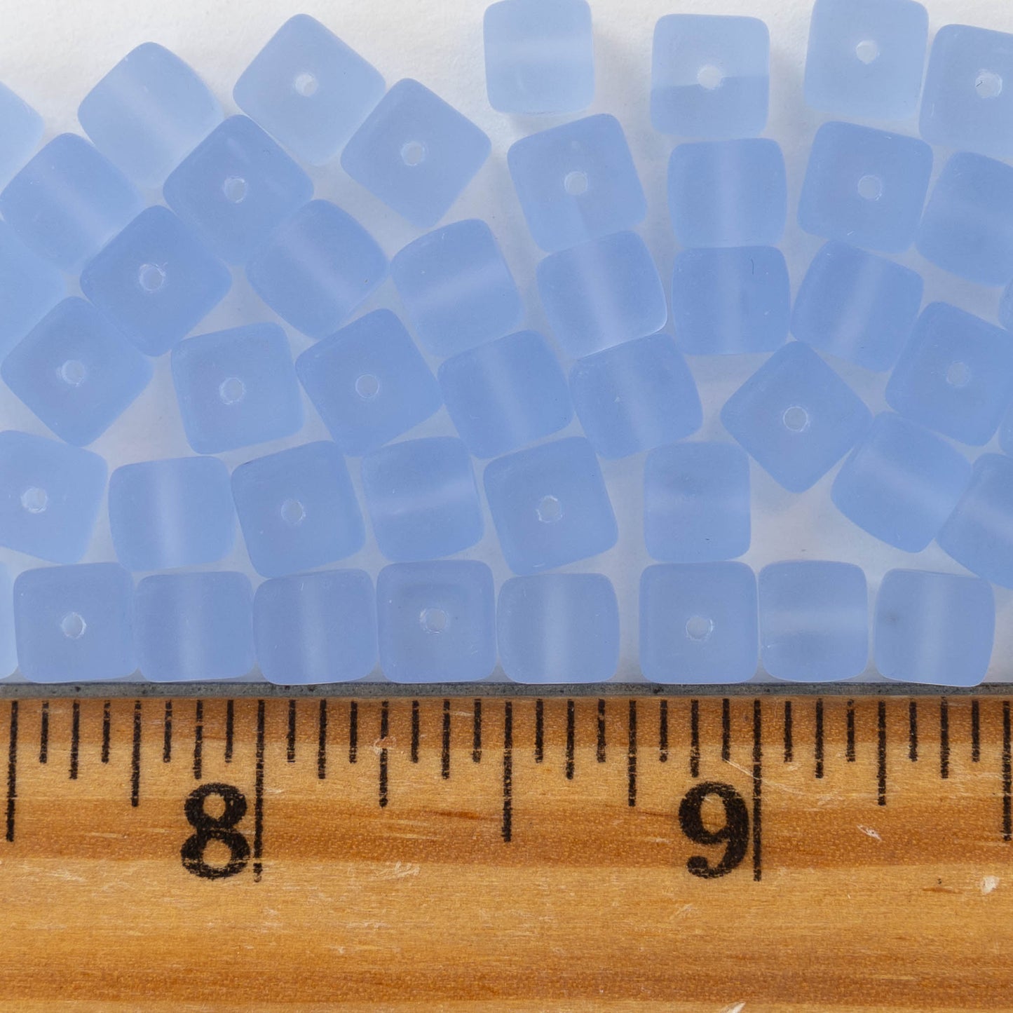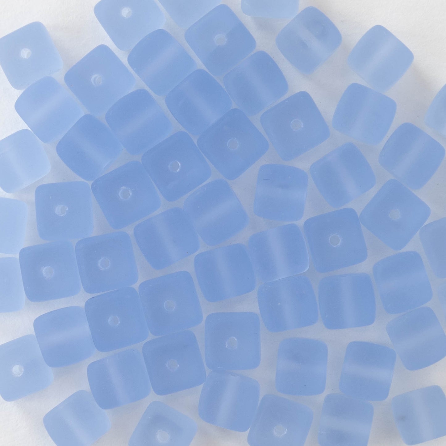 5x7mm Glass Cube Beads - Matte Light Blue - 50 beads