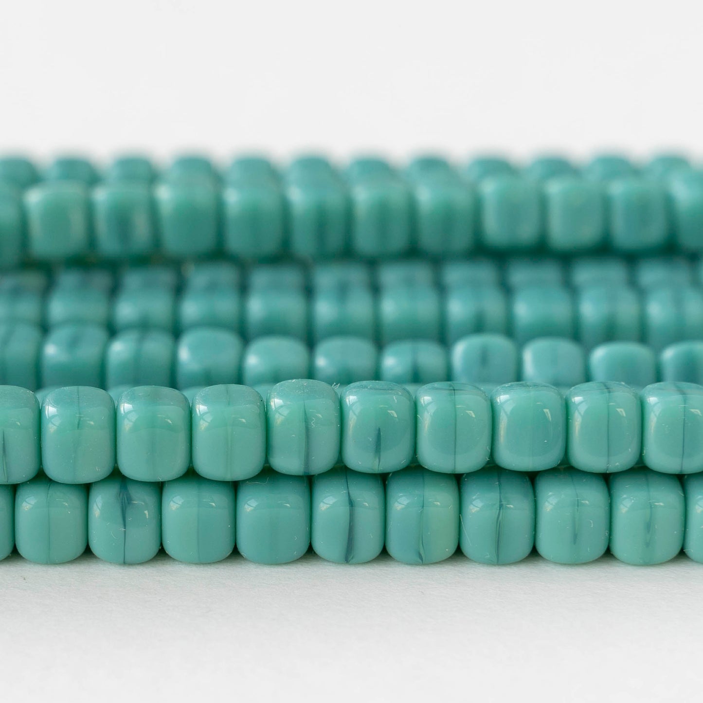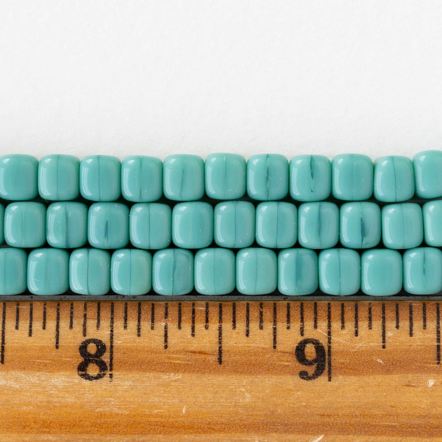 5x7mm Glass Cube Beads - Opaque Turquoise - 25 or 50 beads