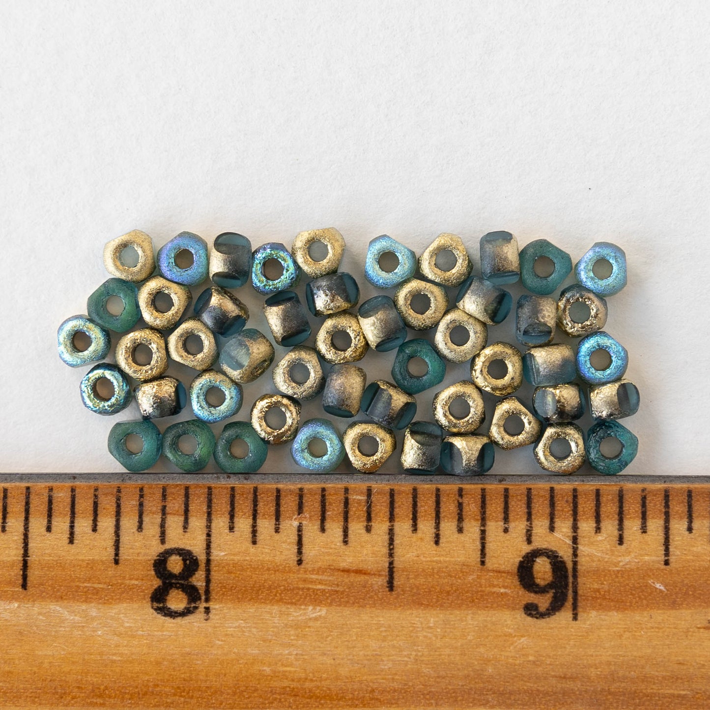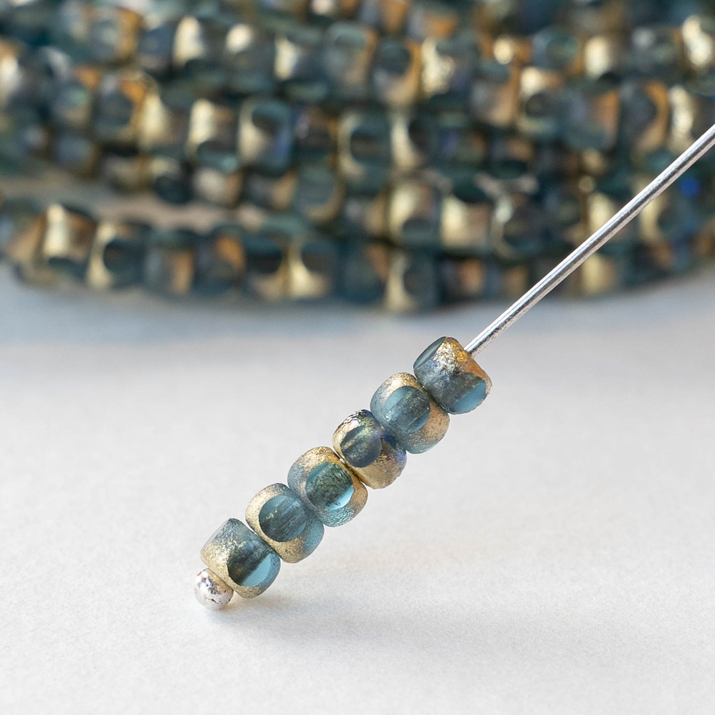 6/0 Tri-cut Seed Beads - Light Blue with an Etched Gold Finish - 50