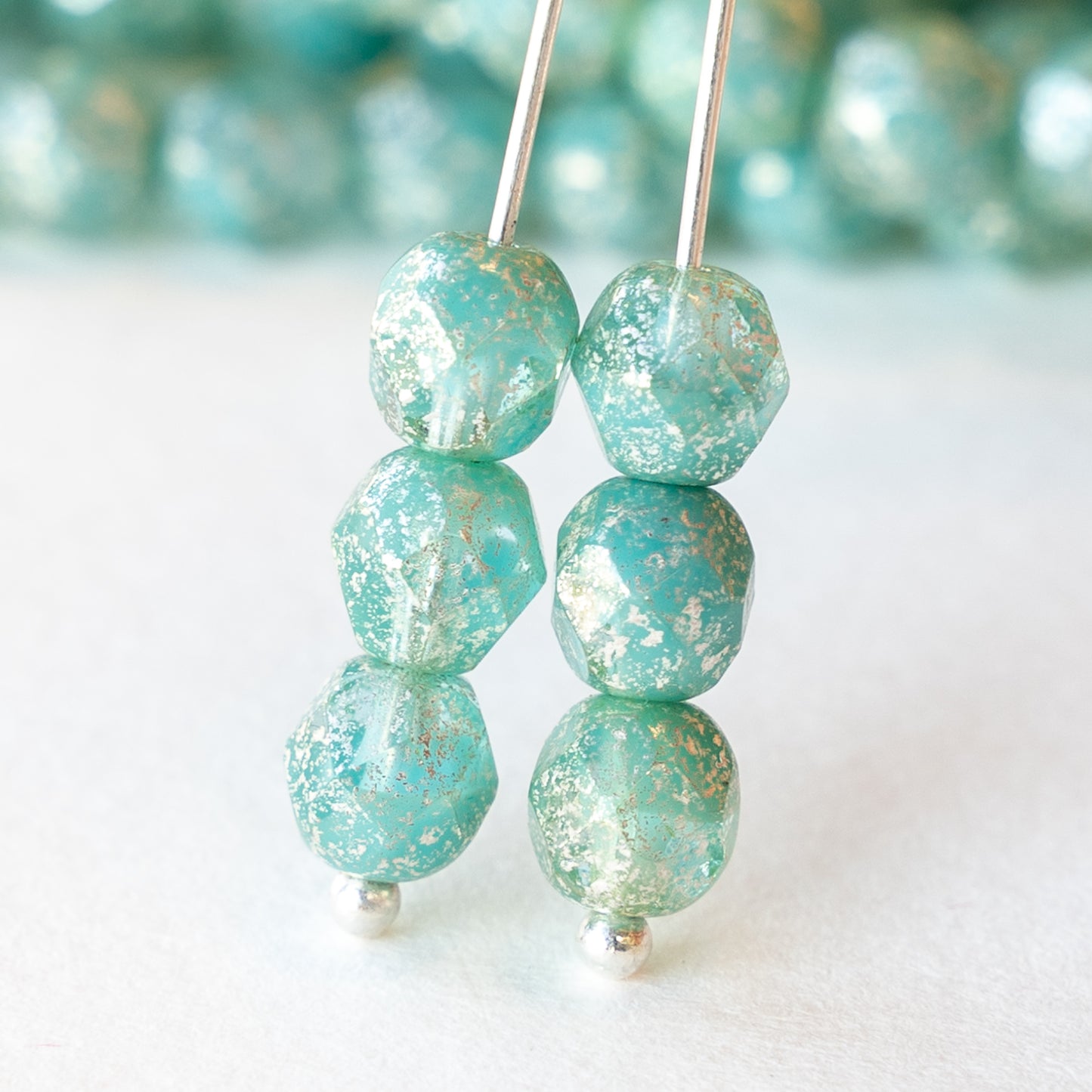Czech glass round firepolished beads. Festive Silver dust.