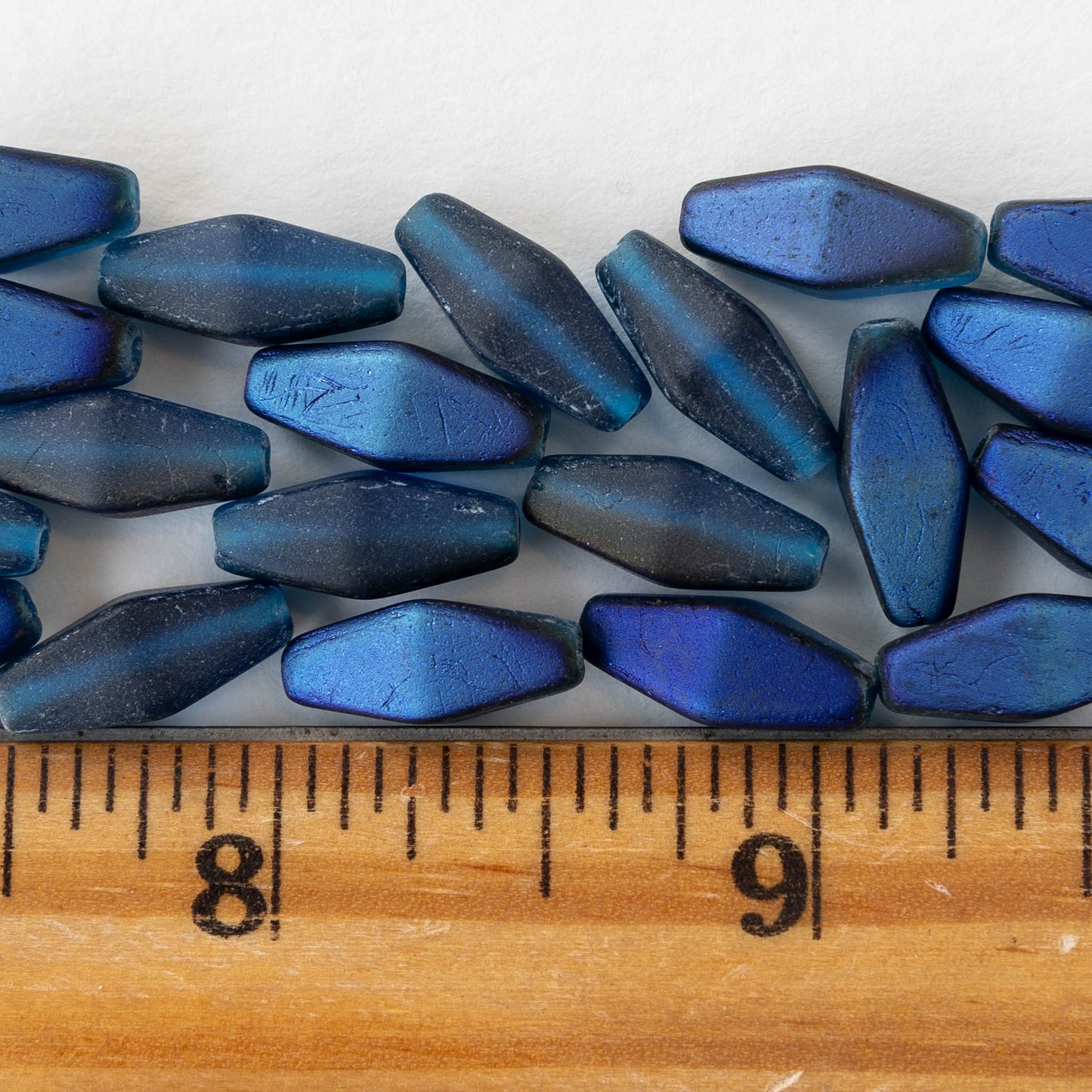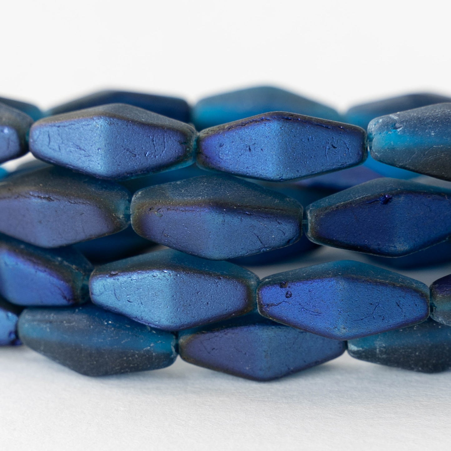 7x14mm Glass Rhombus Beads - Metallic Matte Blue - 10 Beads