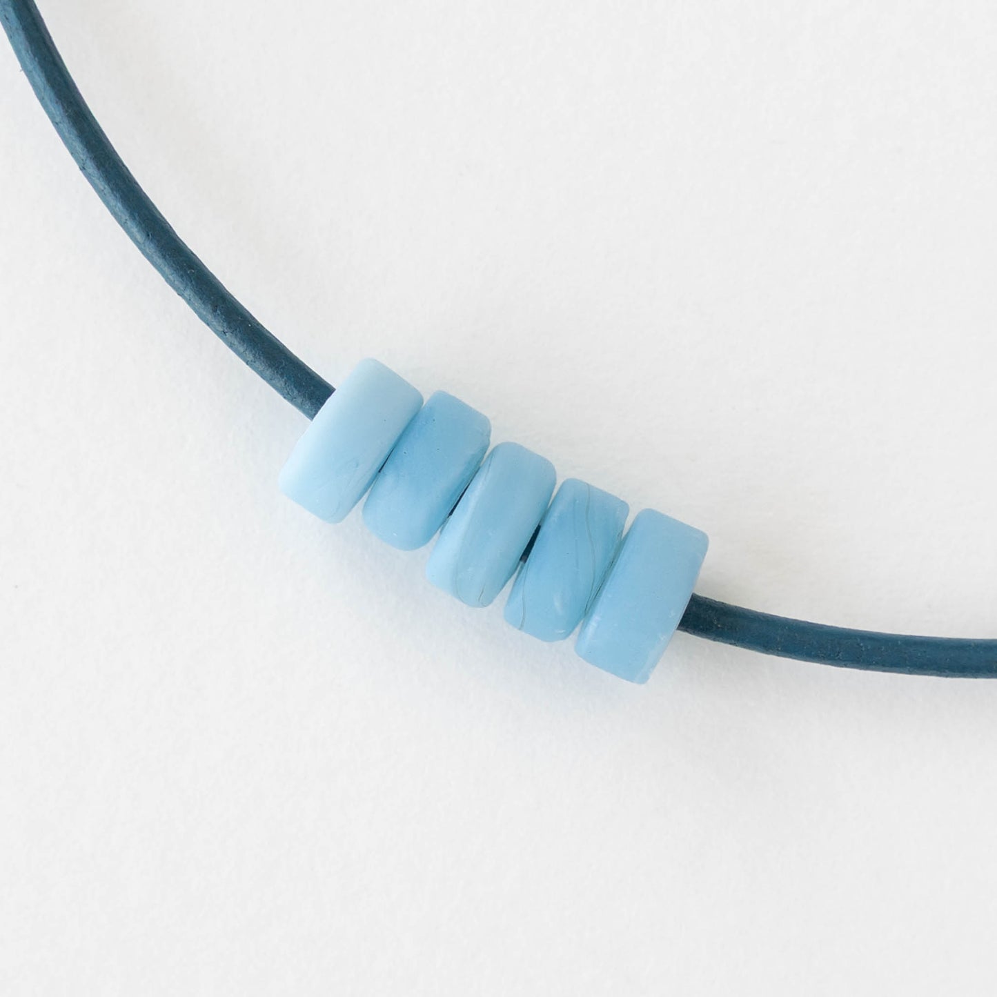 Irregular glass disk beads from Indonesia.