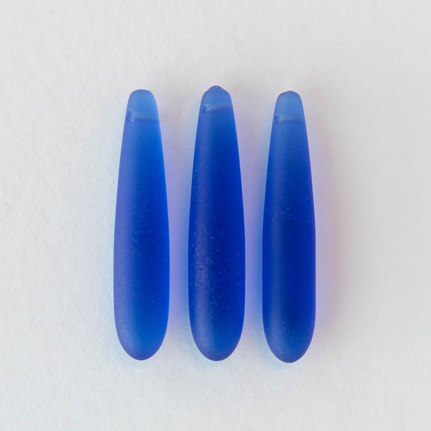 Long top drilled frosted glass tear drops. Soft to the touch as well as to the eye. Like perfect beach glass. Cultured sea glass is of course man made. But we still love it!