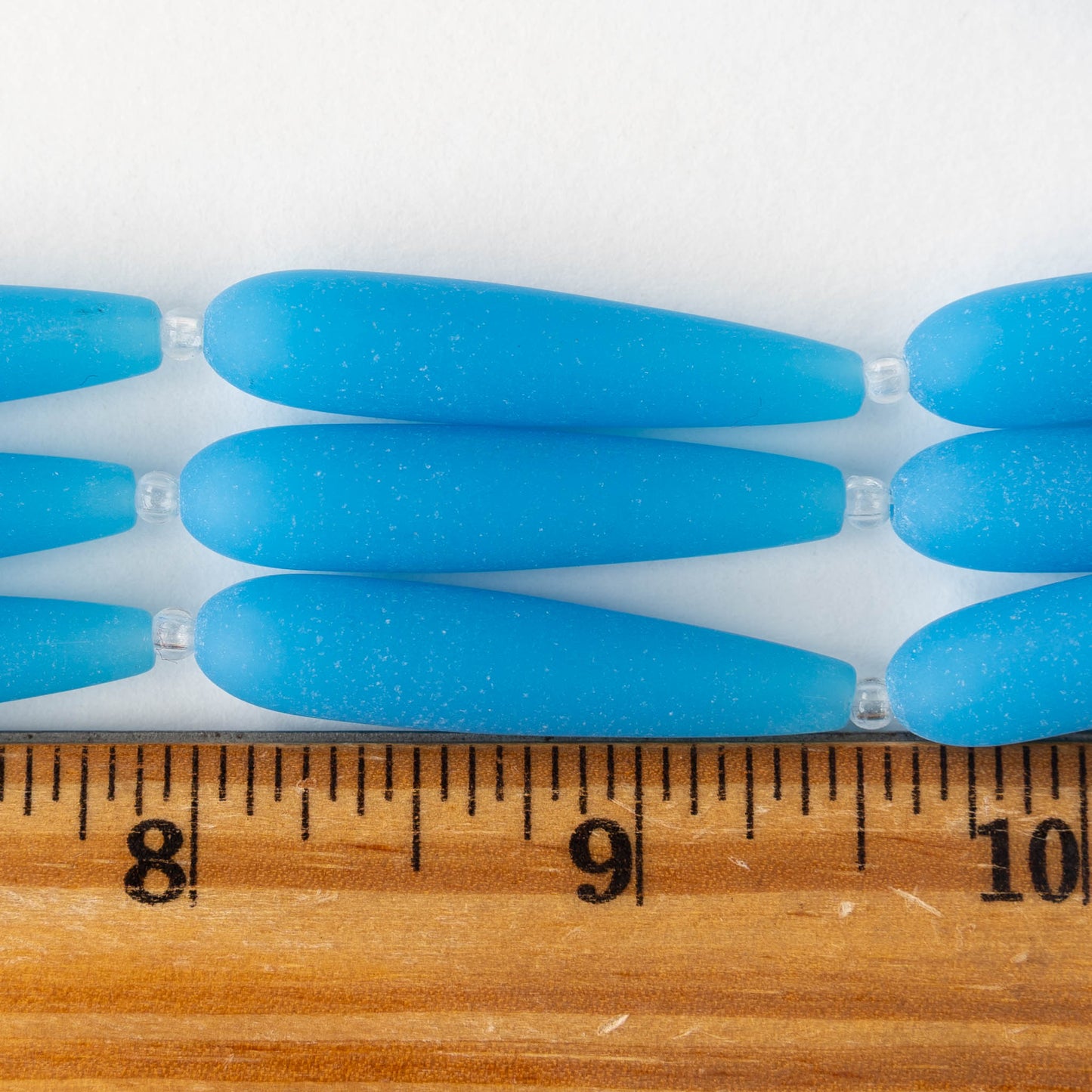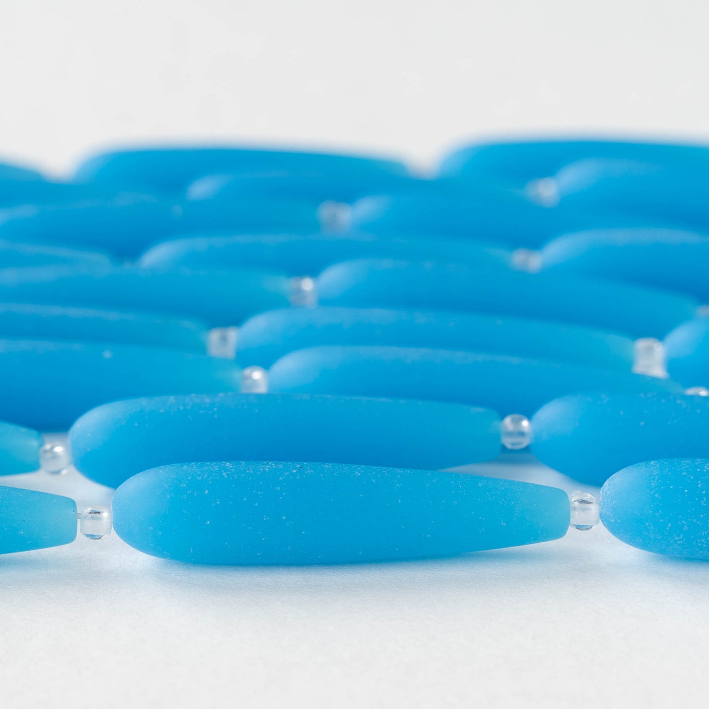 8x38mm Frosted Glass Long Drill Drops - Opaque Blue - 10 Beads