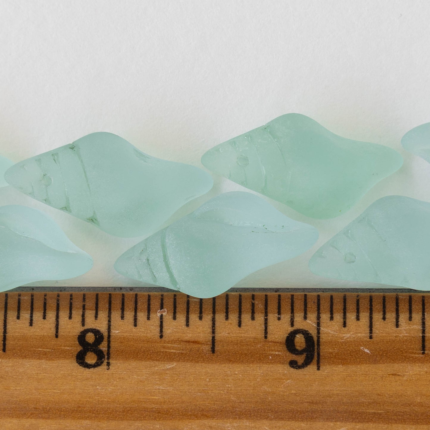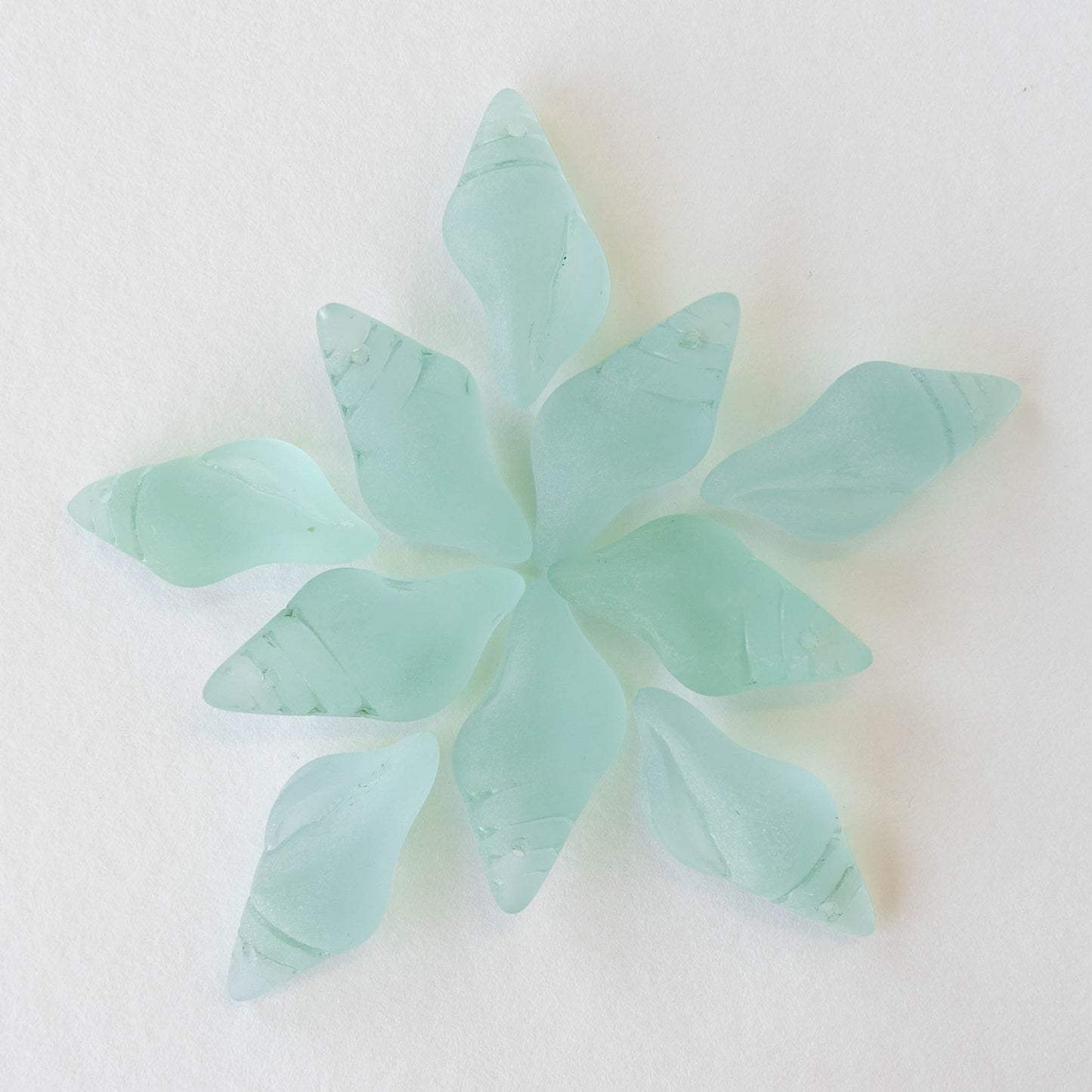 12x26mm Frosted Glass Conch Shell Bead - Coke Bottle Green - 2 Beads