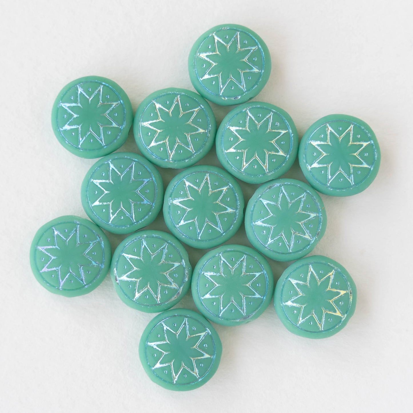 13mm Star of Ishtar - Mint with AB Finish - 6 beads