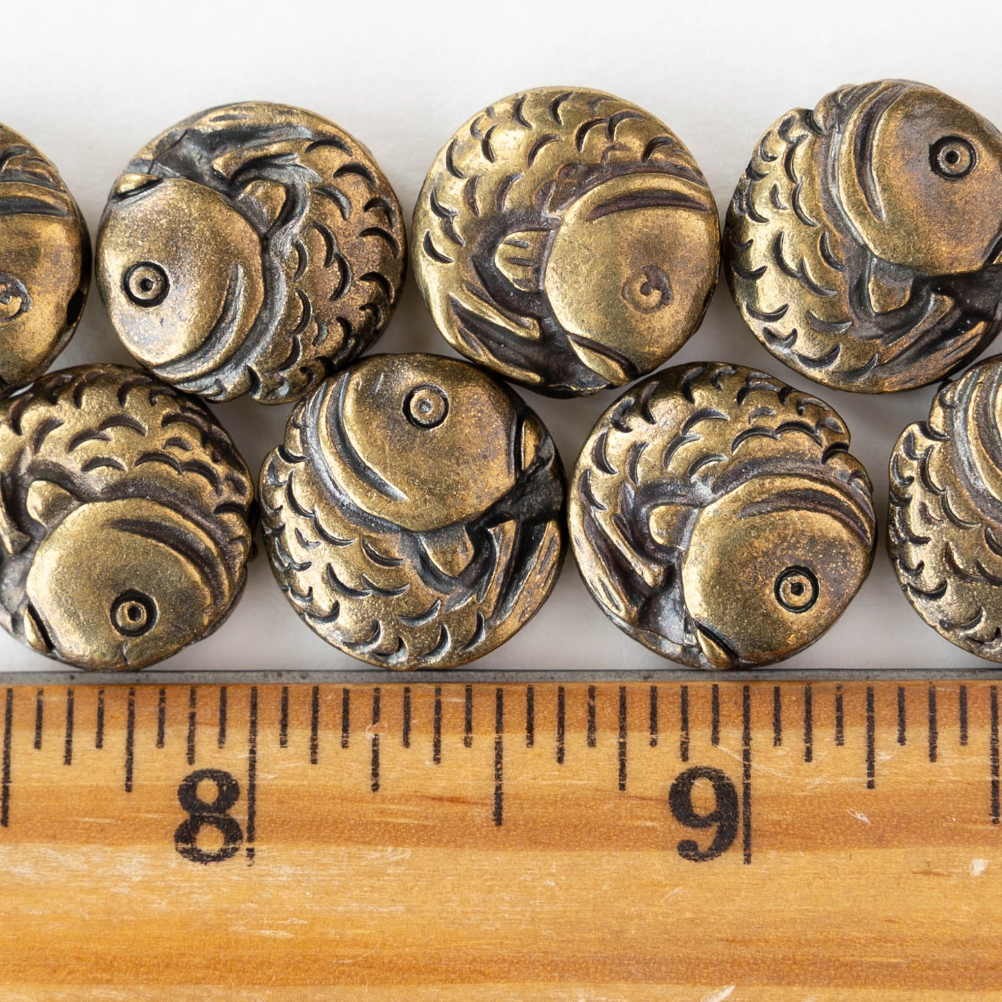 16mm Koi Coin Beads - Antique Brass - 2 or 6 beads