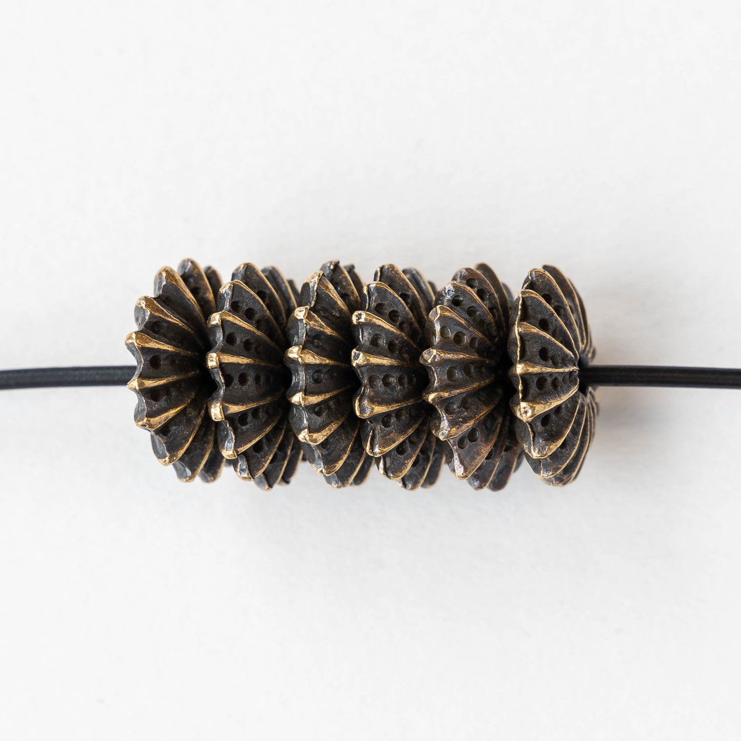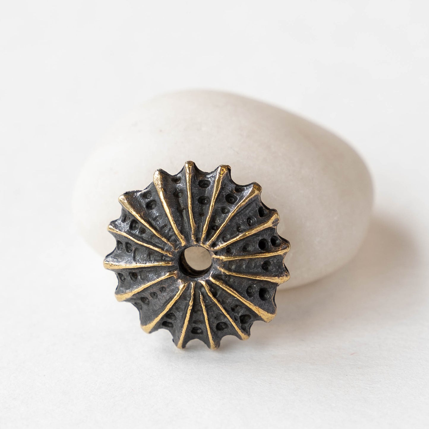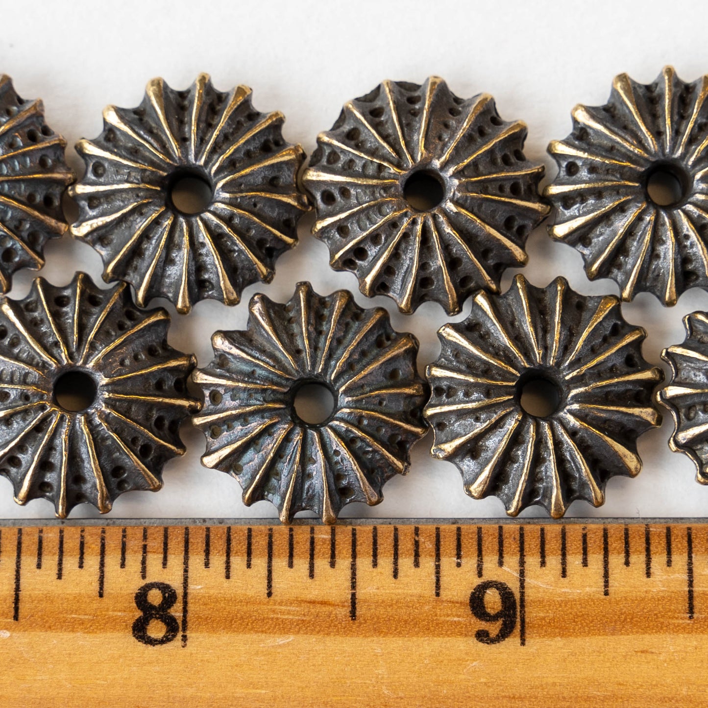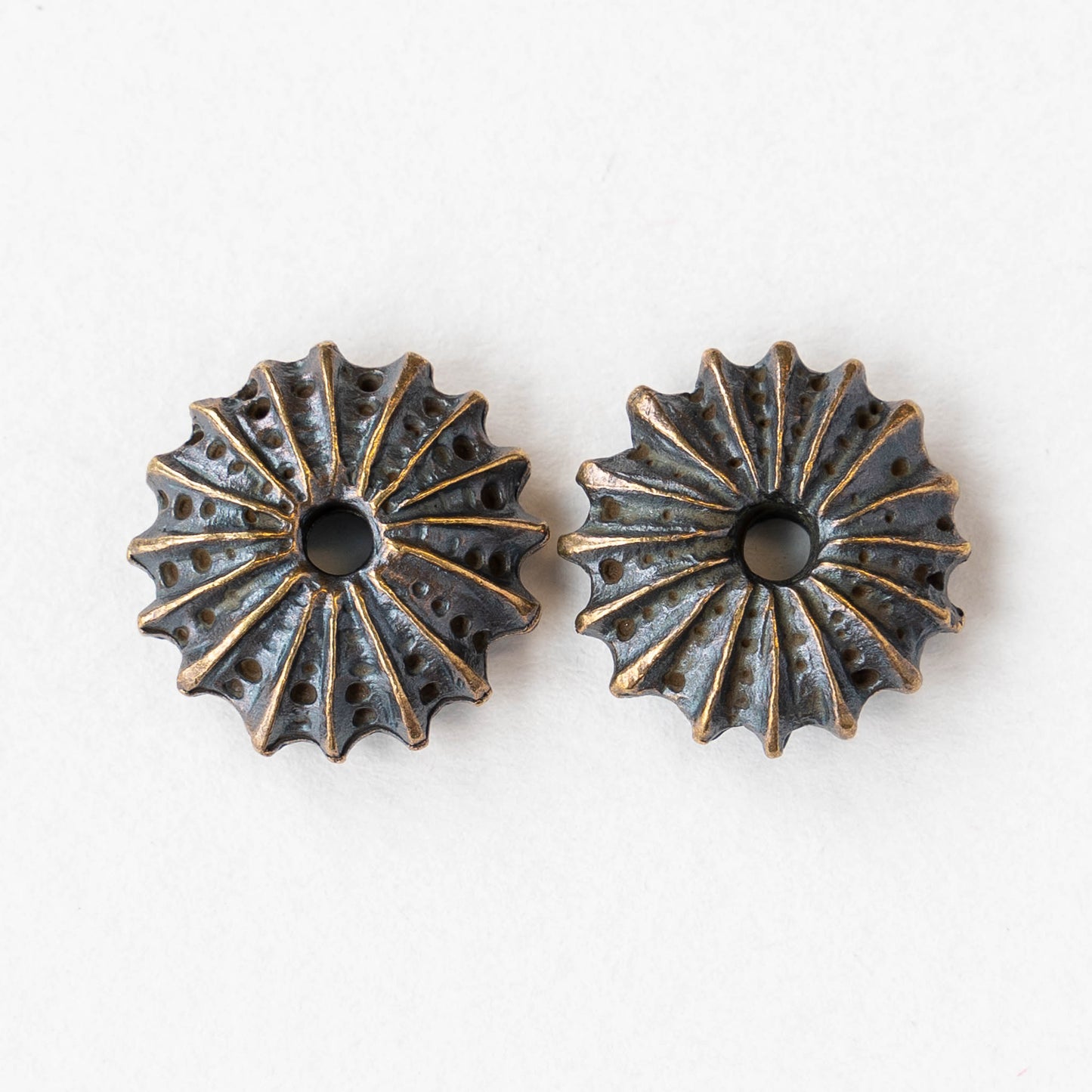 19mm Mykonos Metal Flat Sea Urchin Beads - Antique Brass -