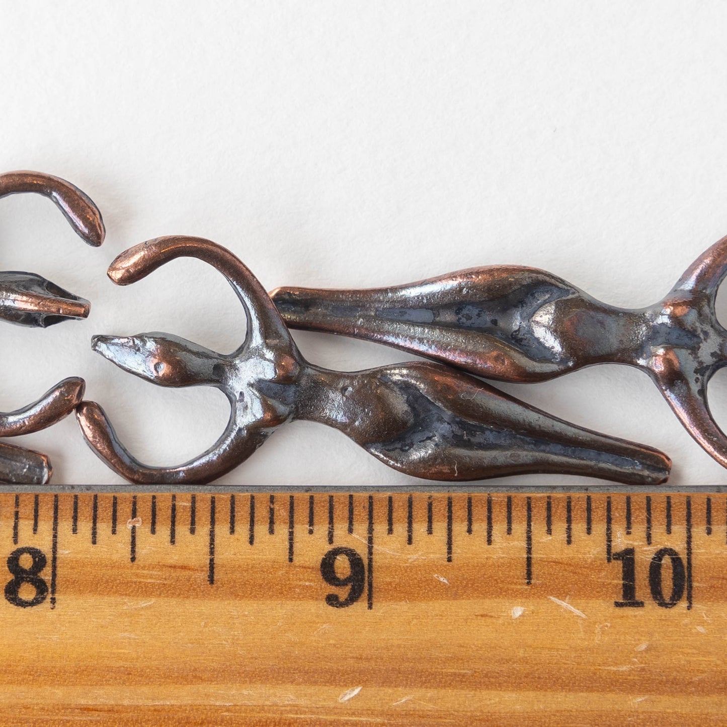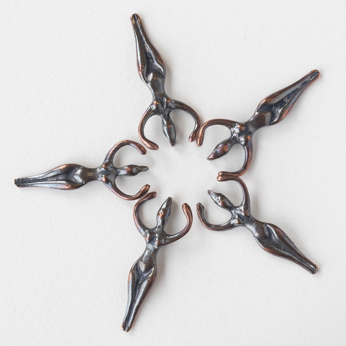 Made from a lead free metal alloy, coated with copper and given a patina finish.