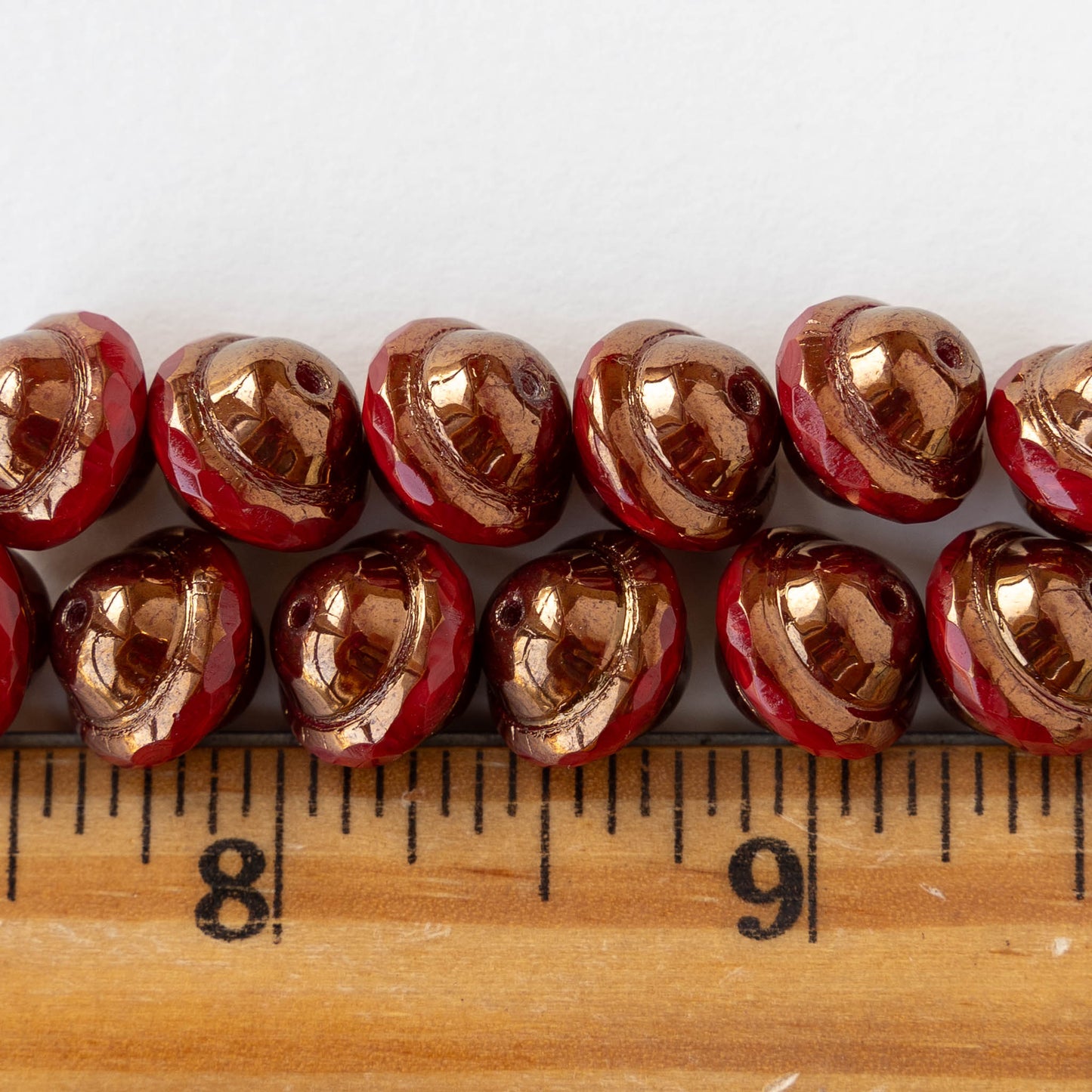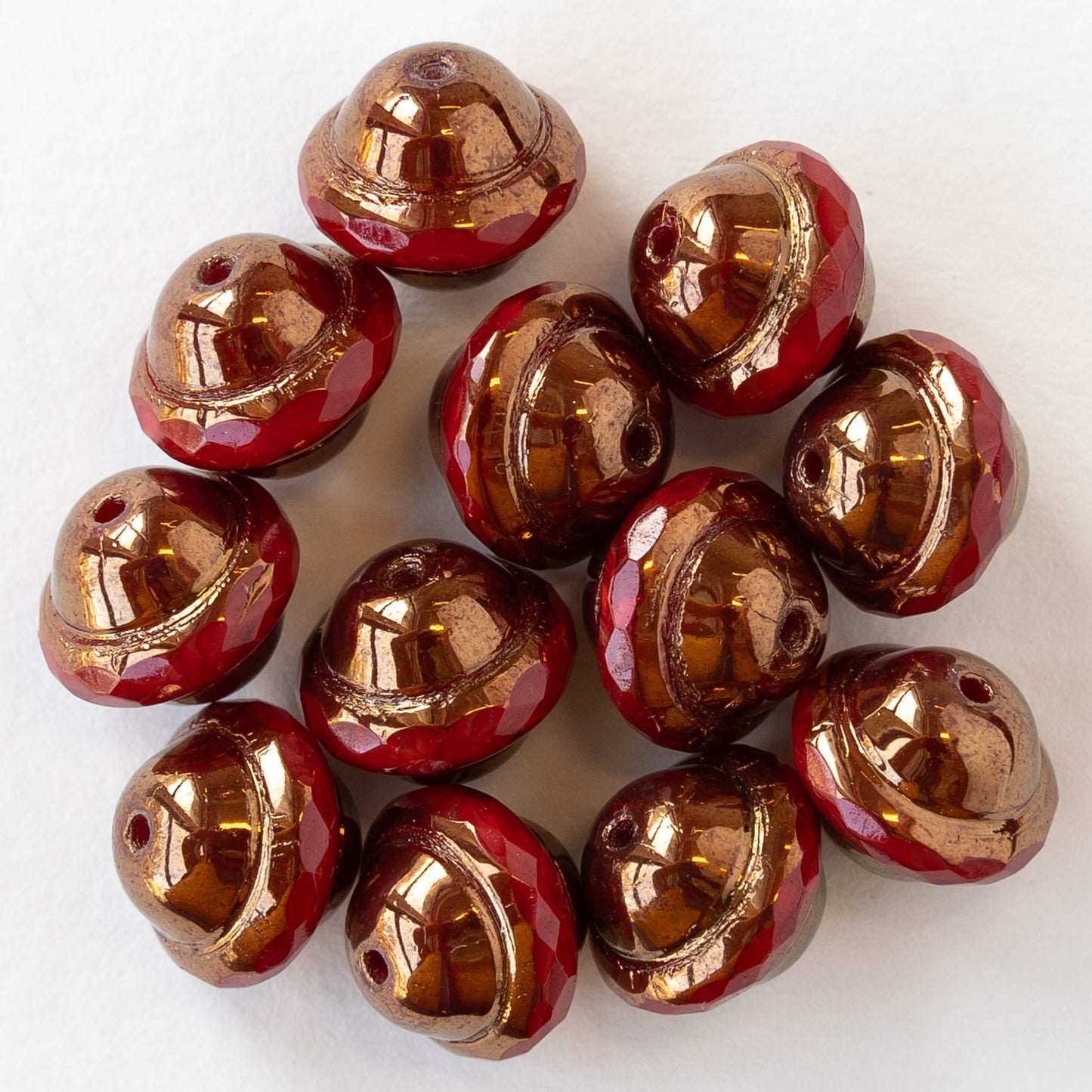 10x12mm Saturn Beads - Red with a Metallic Bronze Finish - 6 or 12 Beads
