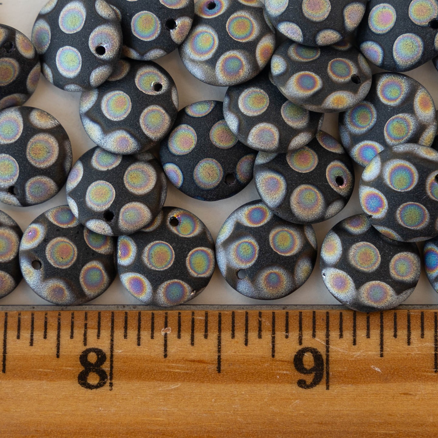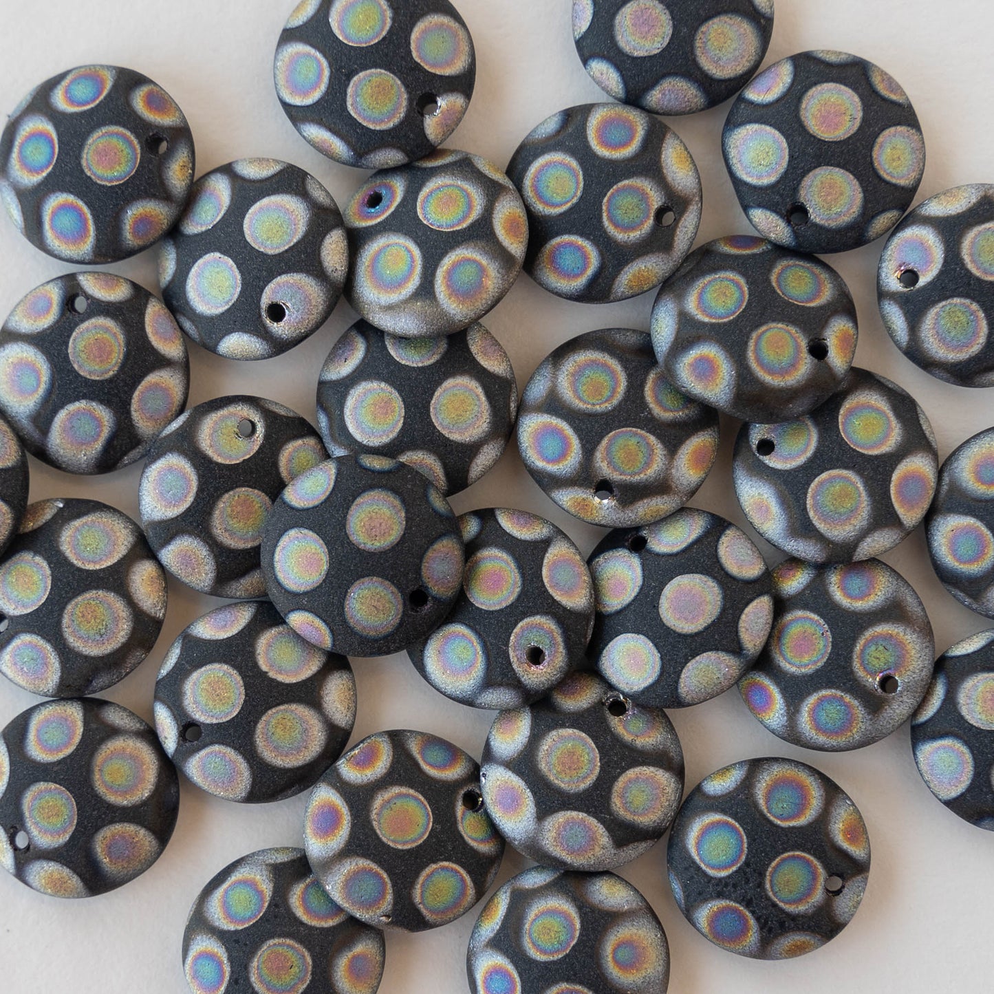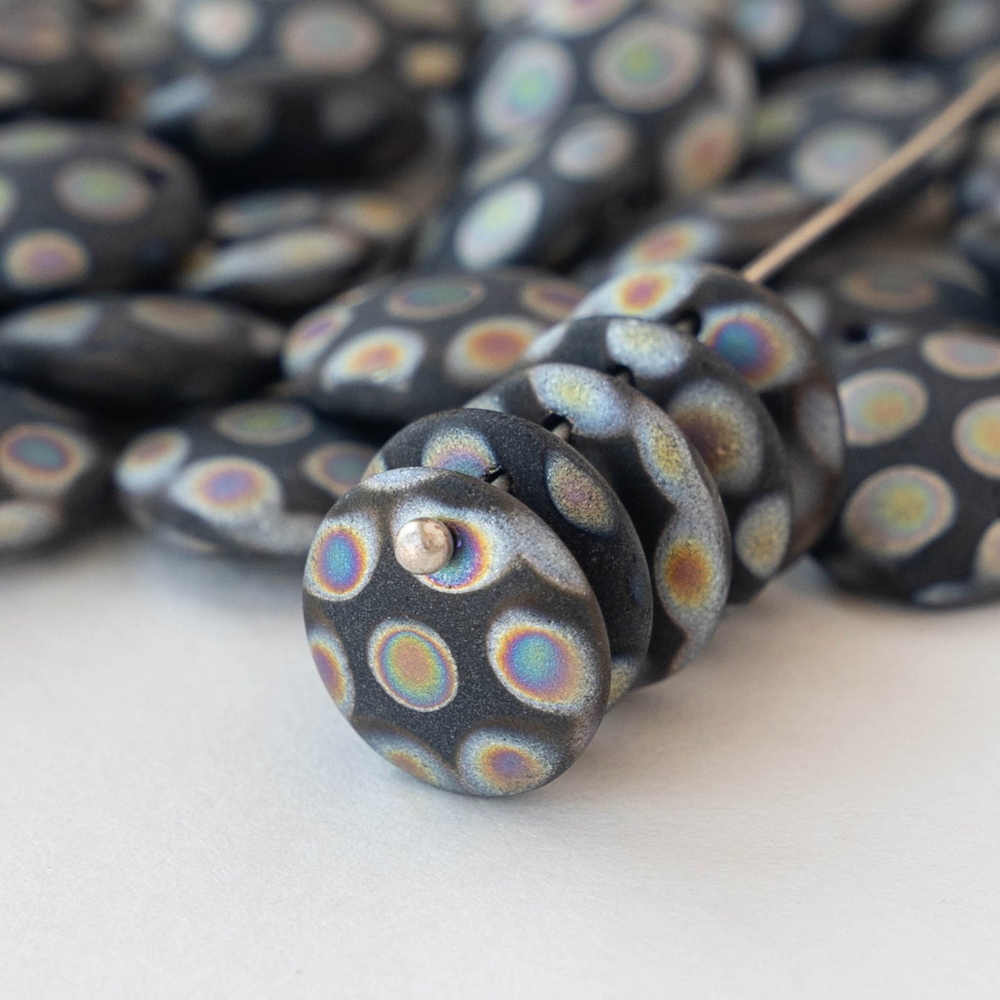 12mm Lentil Drop - Black Matte Peacock - 10 beads