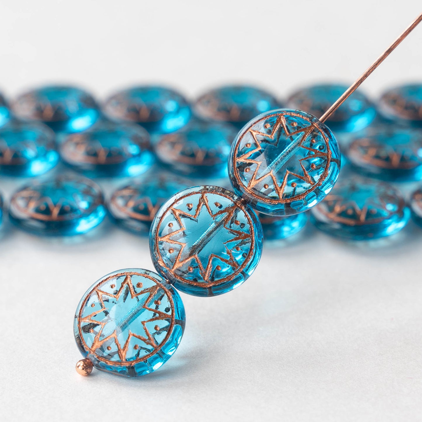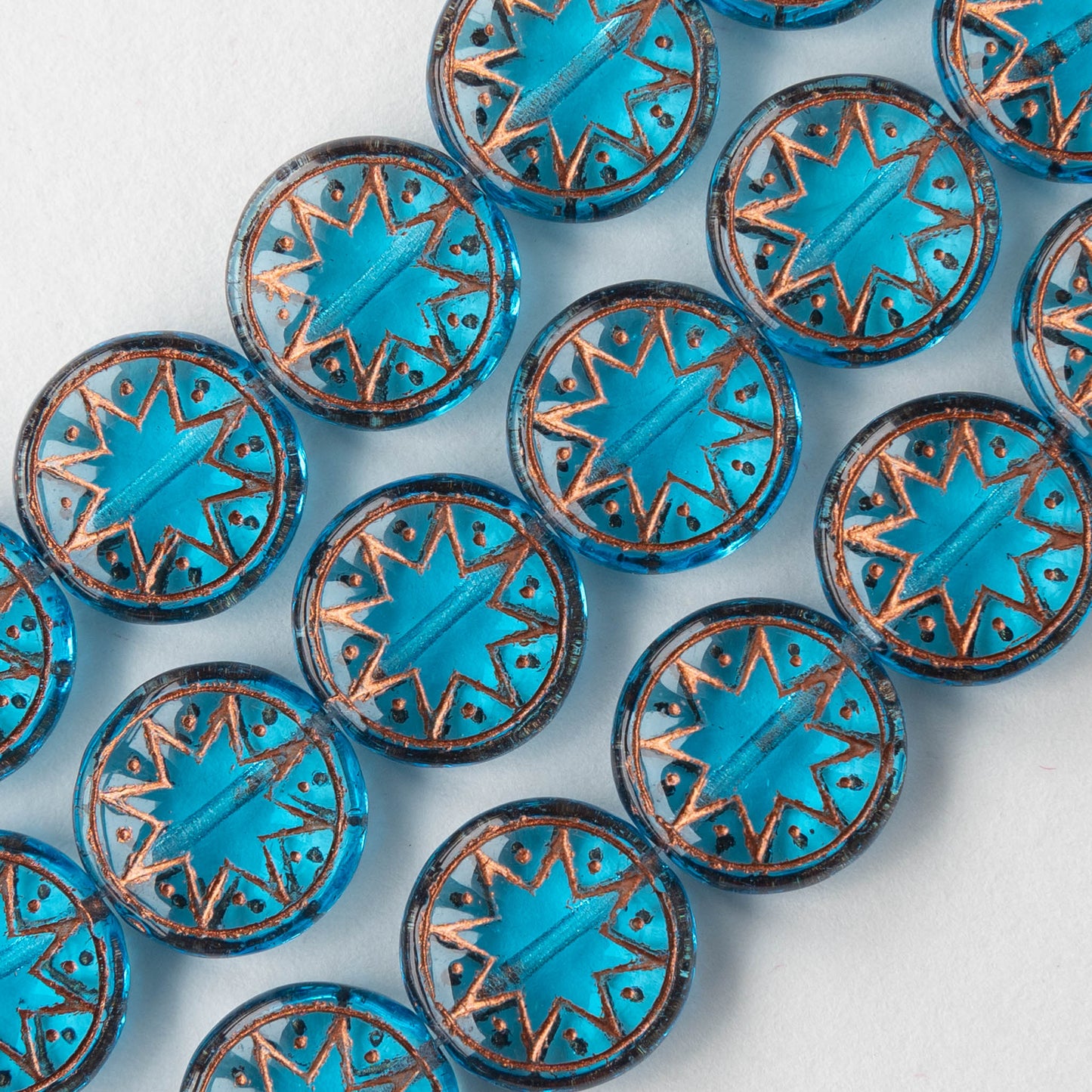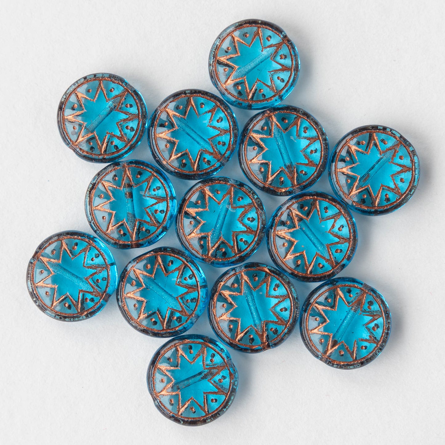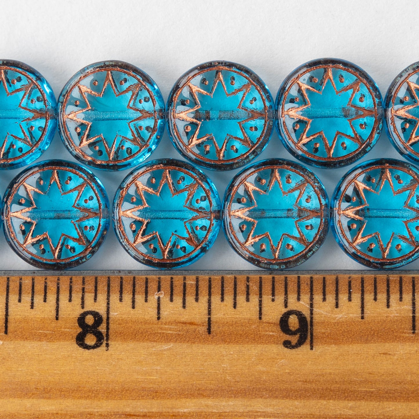 13mm Star Of Ishtar - Teal with Copper Wash - 6 beads