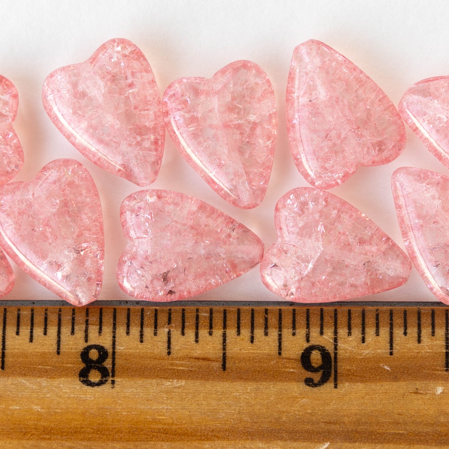 16x13mm Glass Heart Beads - Pink Crackle - 10 hearts