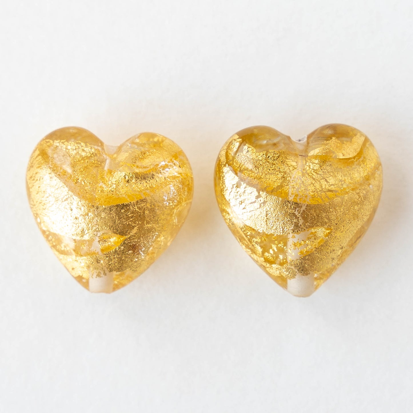 All available inventory for 18mm Glass Heart Beads - Crystal with Gold Foil - 1 heart has been added to the cart.