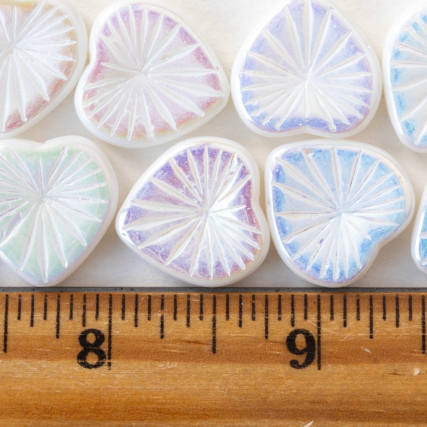 All available inventory for 18mm Glass Heart Beads - Opaque White Iridescent - 4 hearts has been added to the cart.