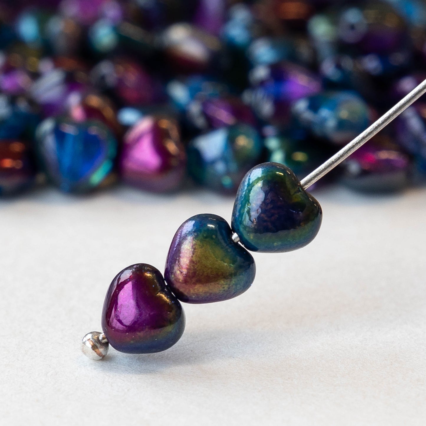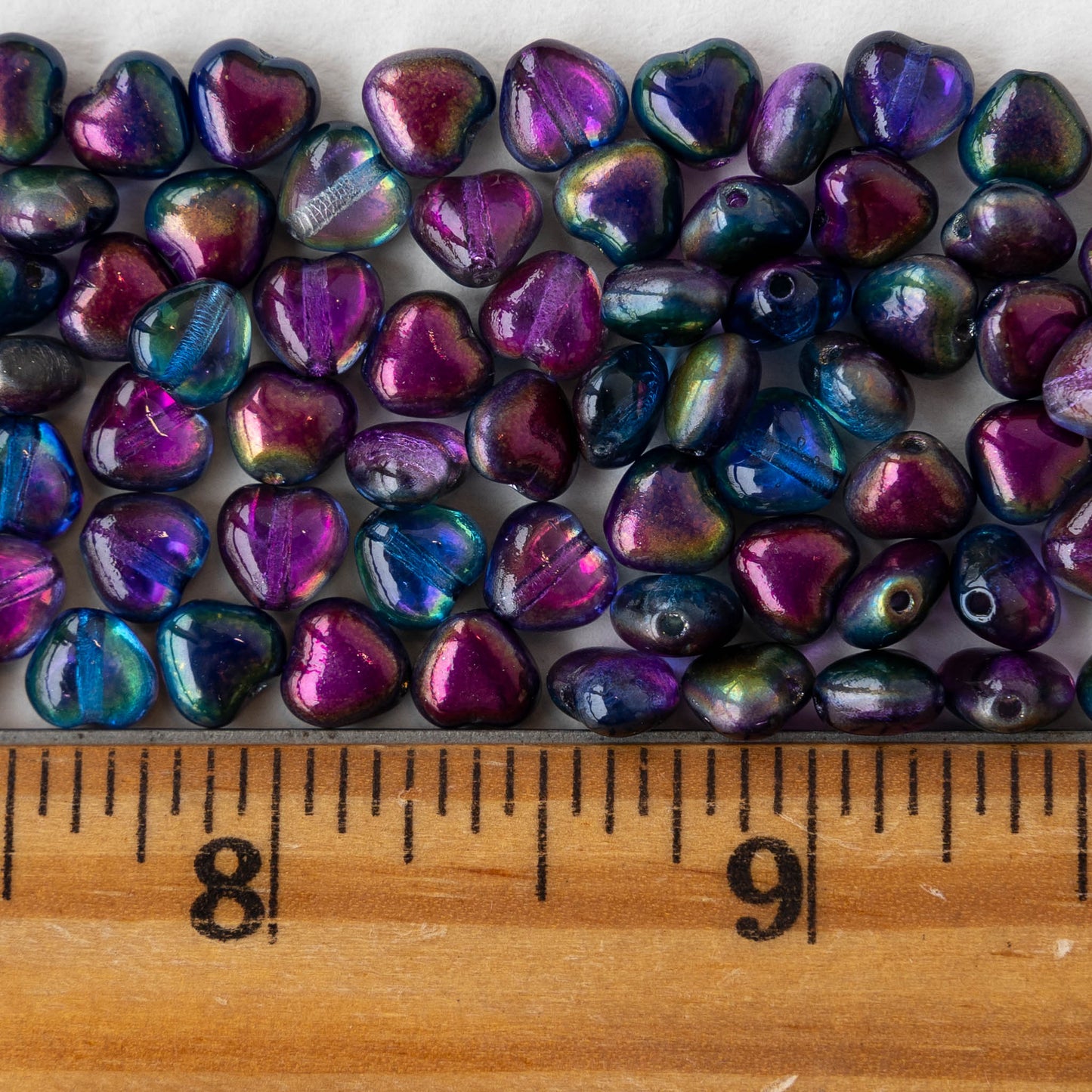 6mm Glass Heart Beads - Crystal Magic Blue - 25 hearts