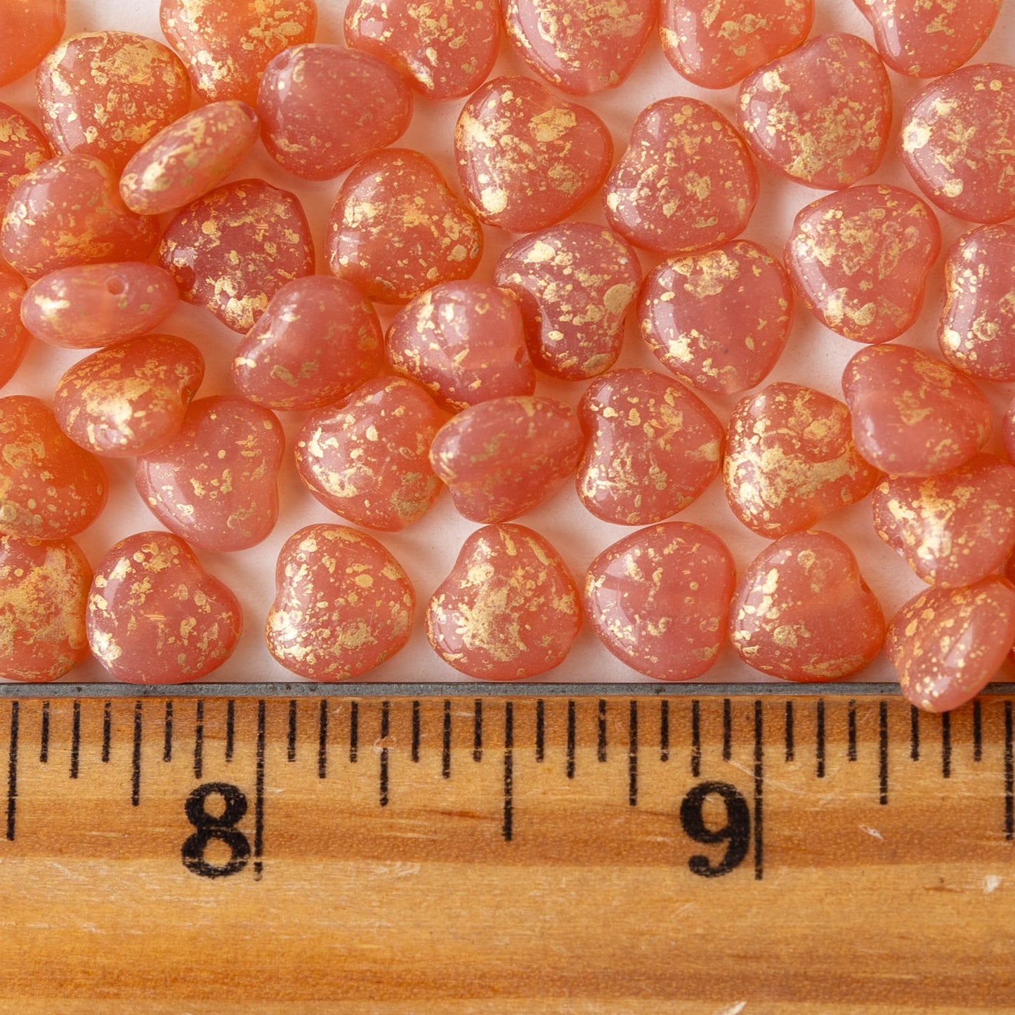 8mm Glass Heart Beads - Opaline Pink with Gold Dust - 20 hearts
