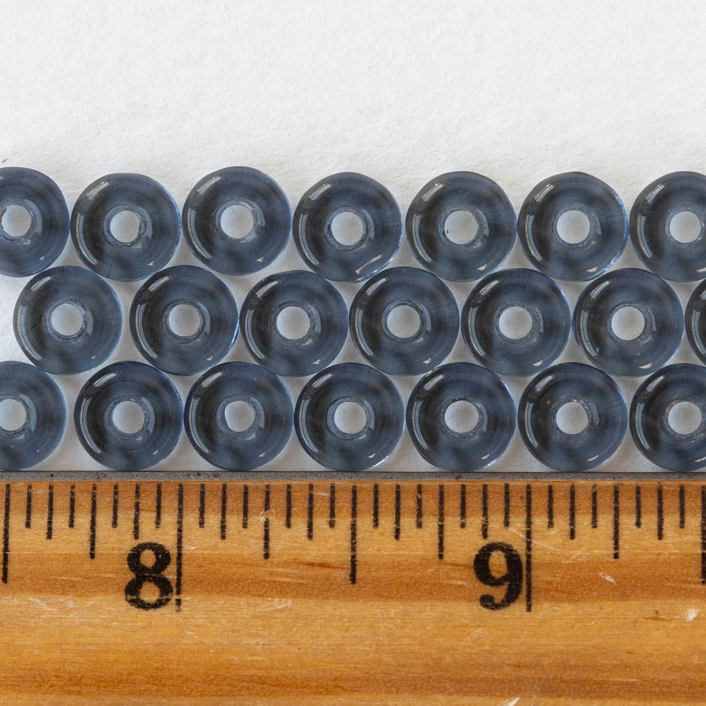8mm Glass Ring Beads - Montana Blue - 50 or 100 Beads