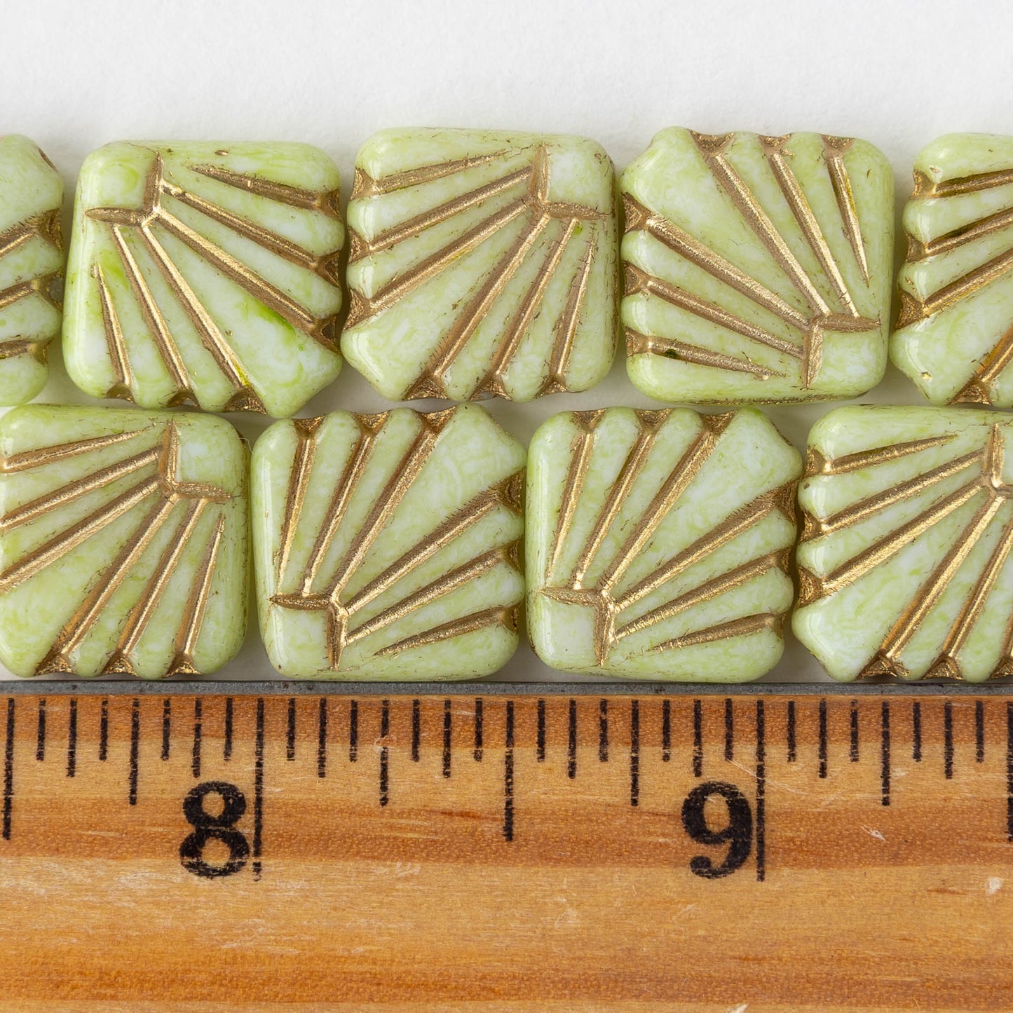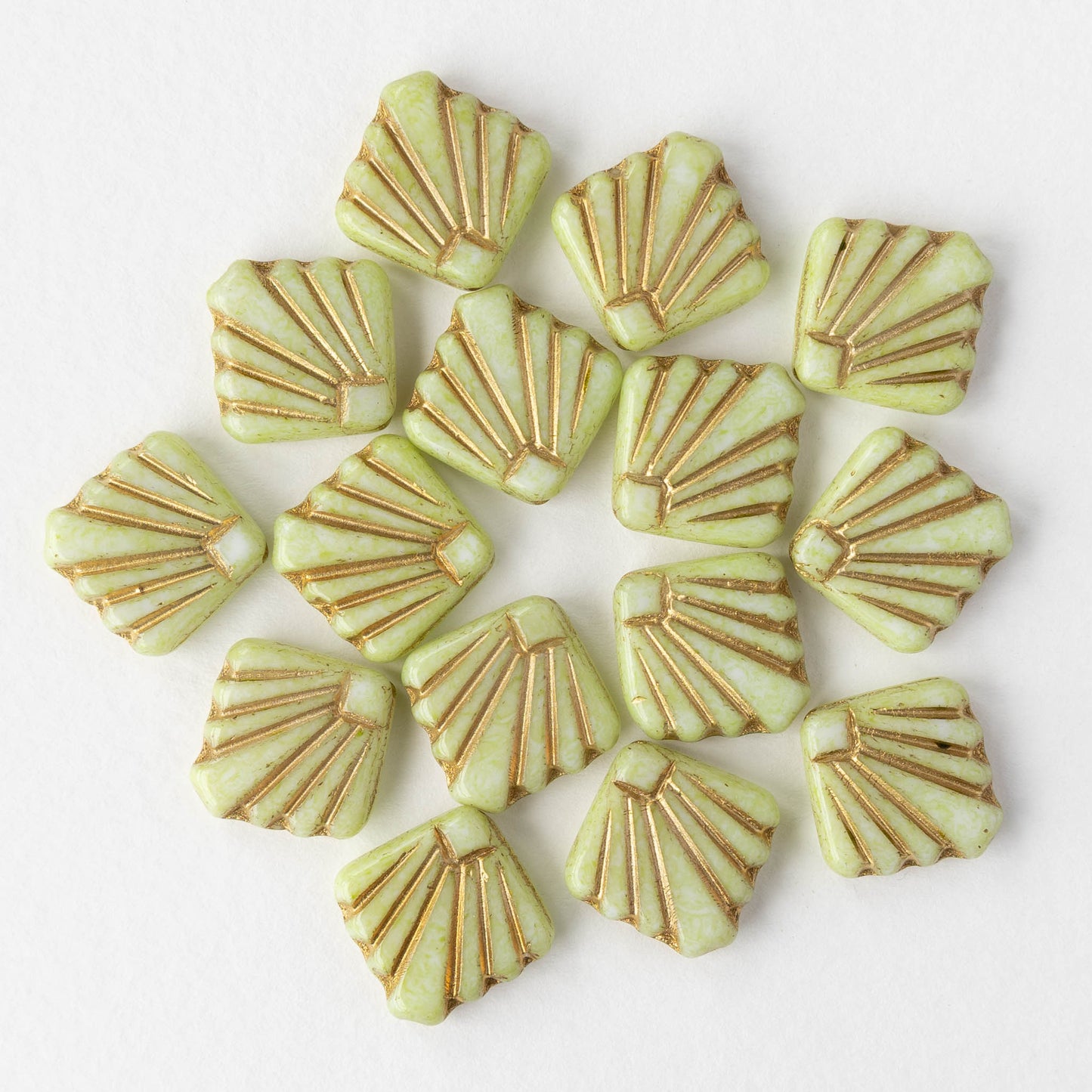 14mm Glass Diafan Beads - Light Green with Gold Wash - 6 or 12 beads