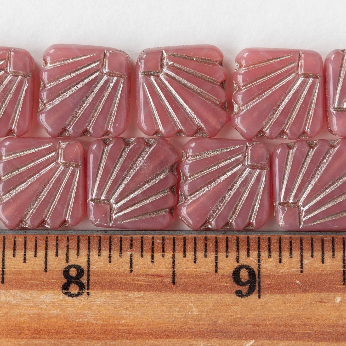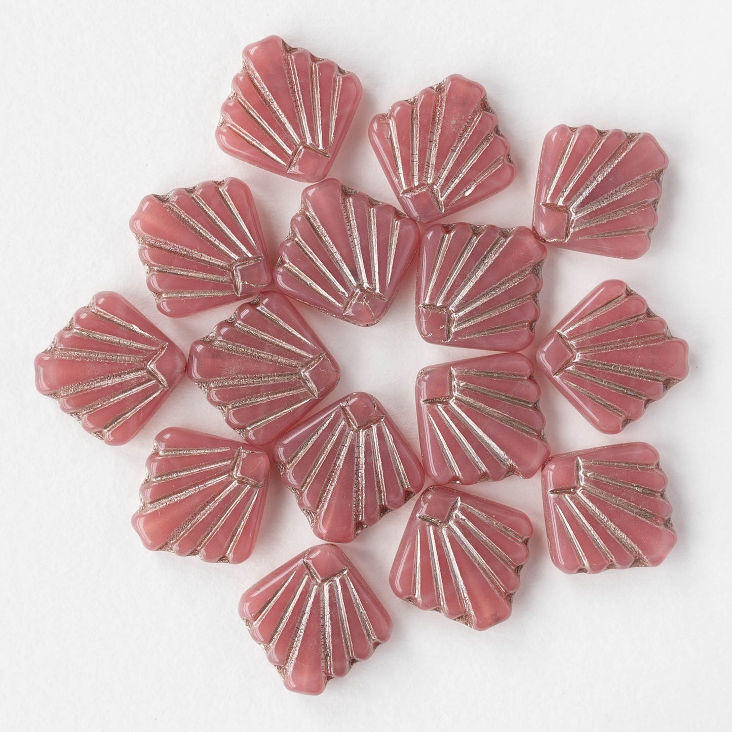 14mm Glass Diafan Beads - Opaline Pink with Silver Wash - 6 or 12 beads