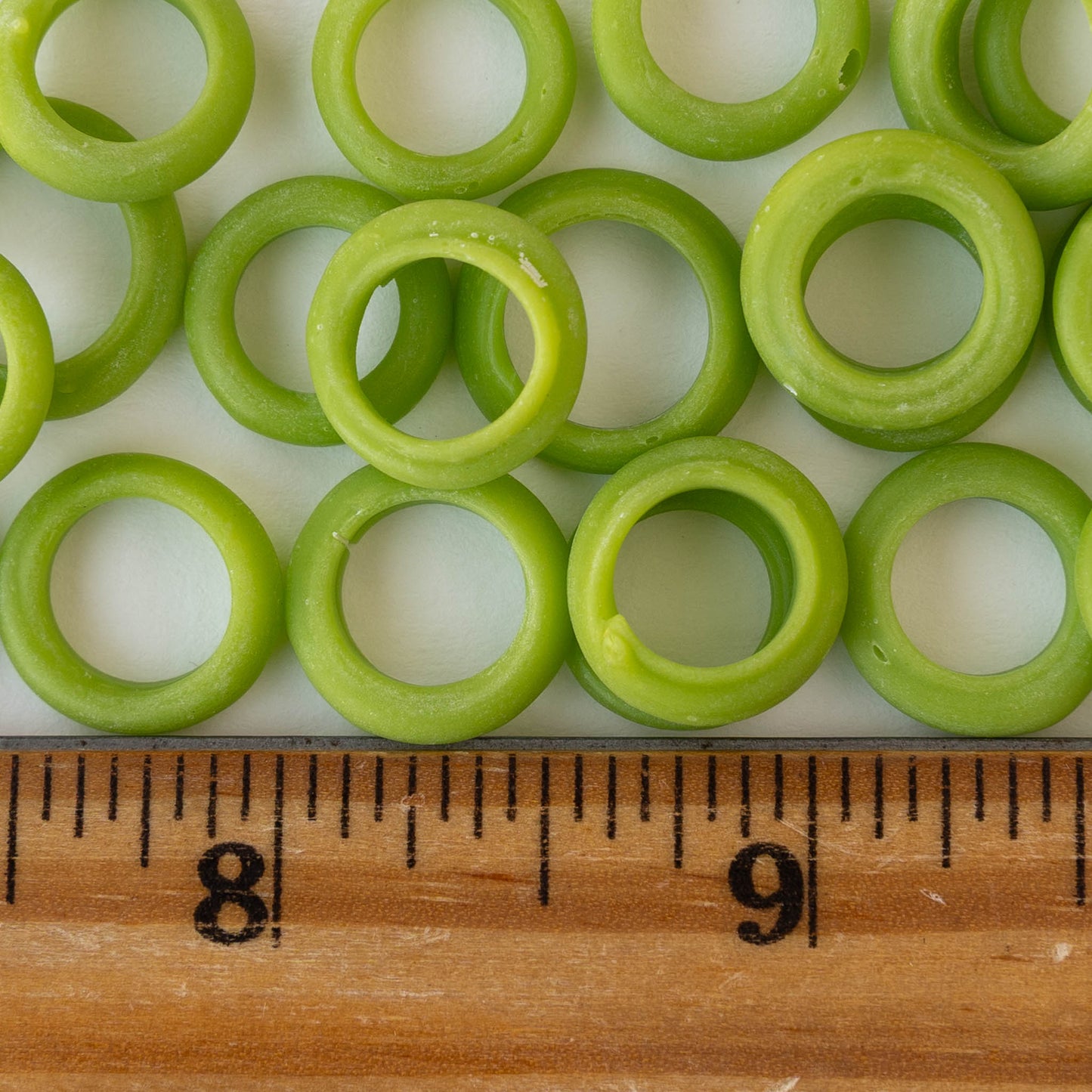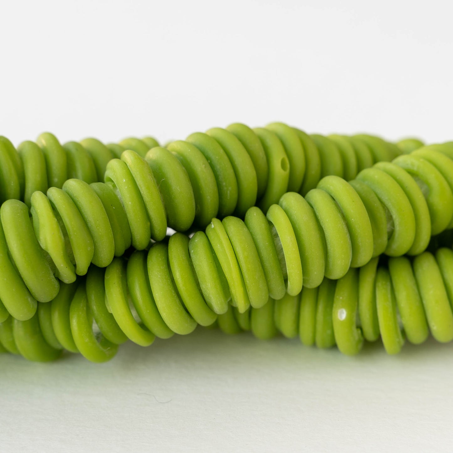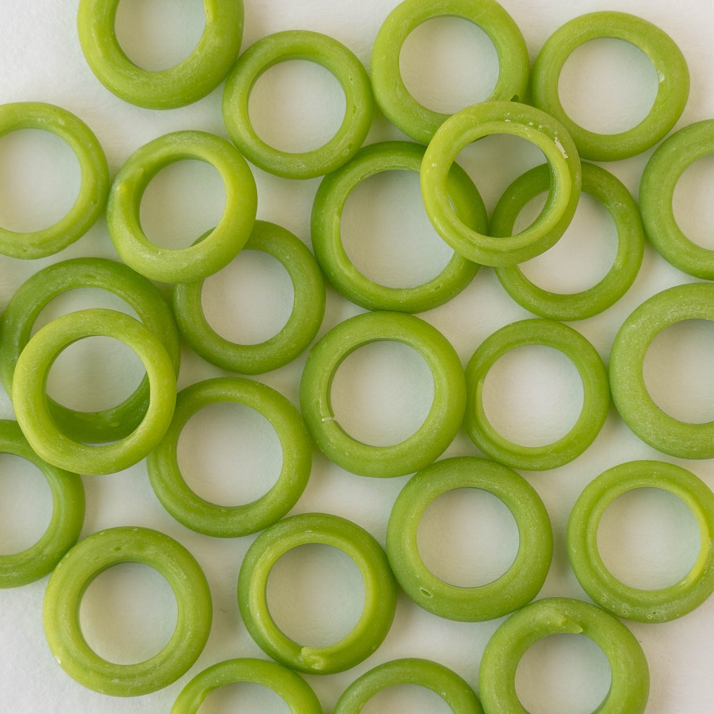 Handmade Glass Rings From Venice Italy - Matte Opaque Lime Green - 20 beads