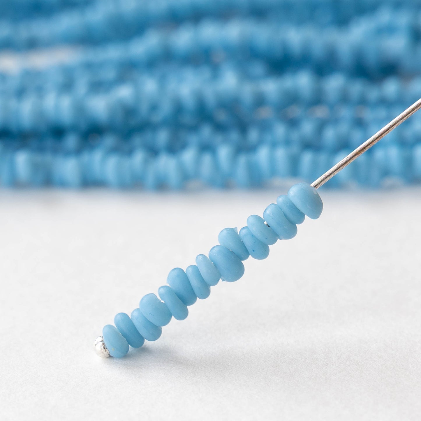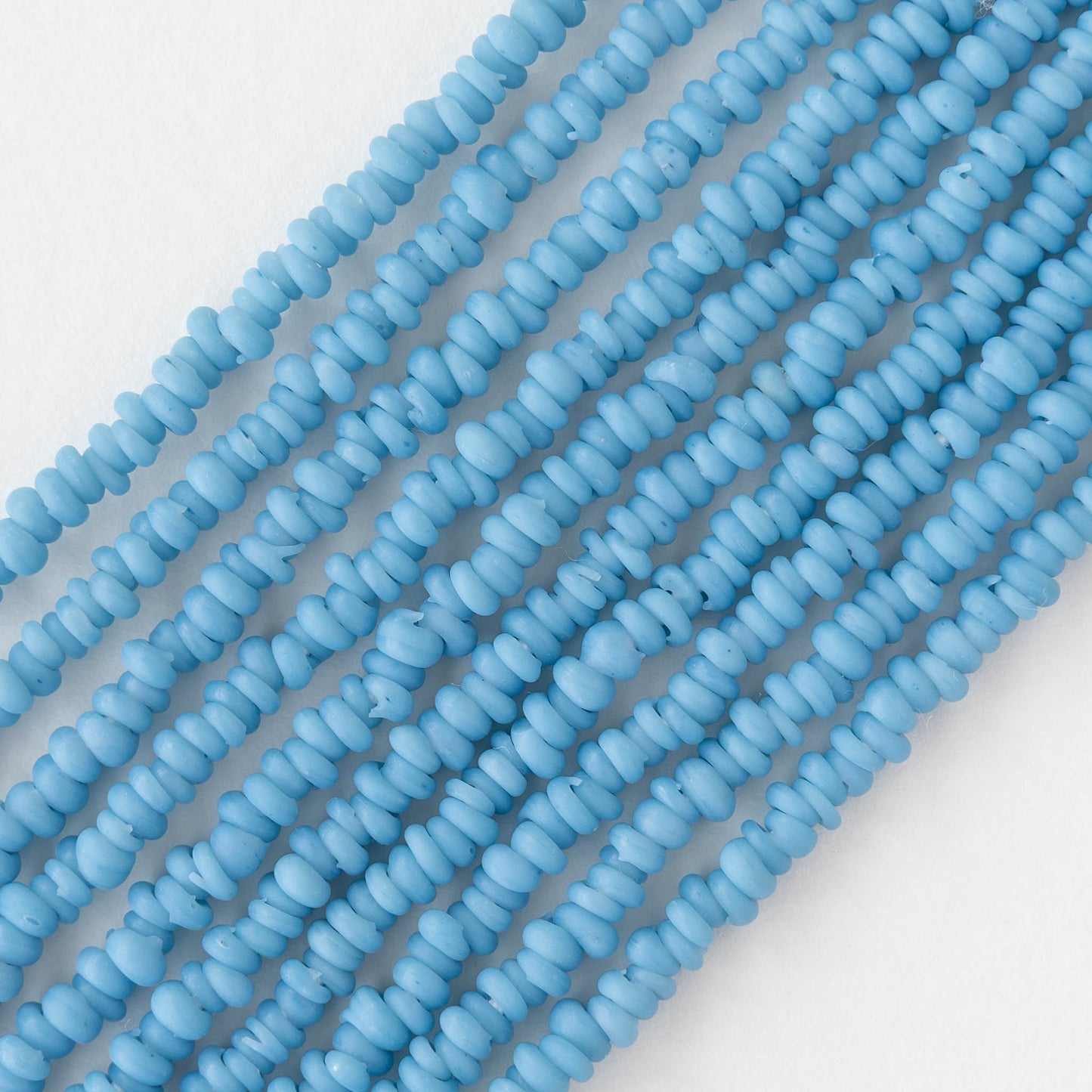 Rustic Indonesian Glass Abon Beads - Baby Blue - Whole or Half Strand