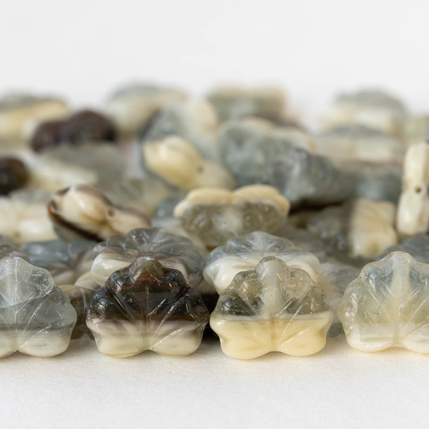 11x13mm Glass Leaf Beads - Neutral Stone Mix - 20 beads