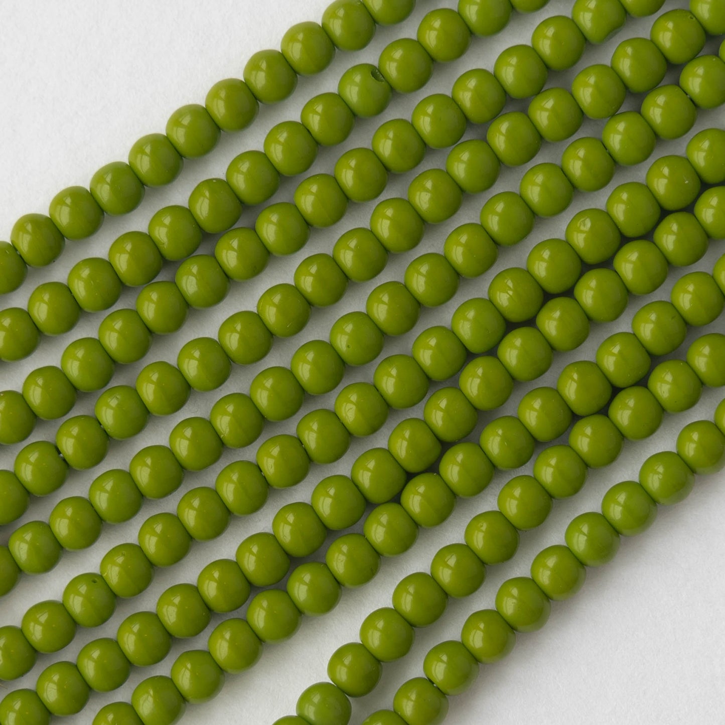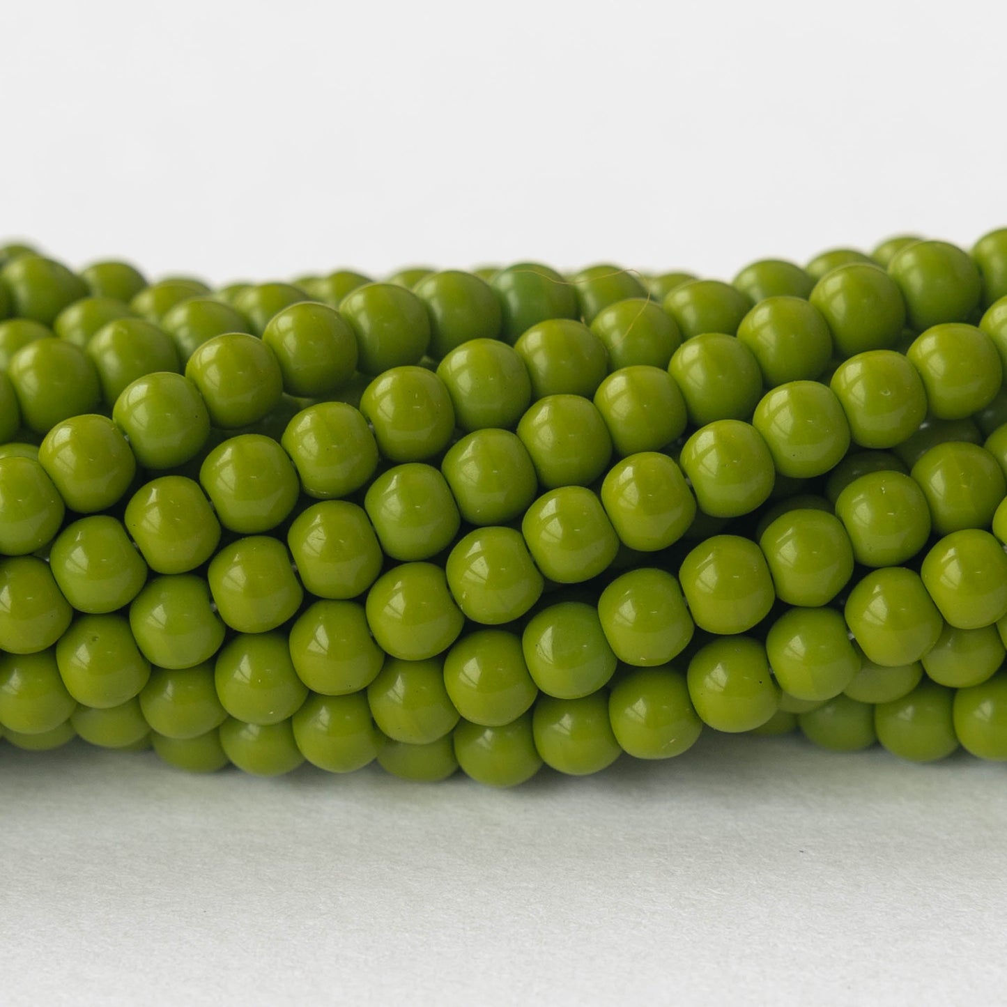4mm Round Glass Beads - Opaque Lime Green - 50 or 100 beads