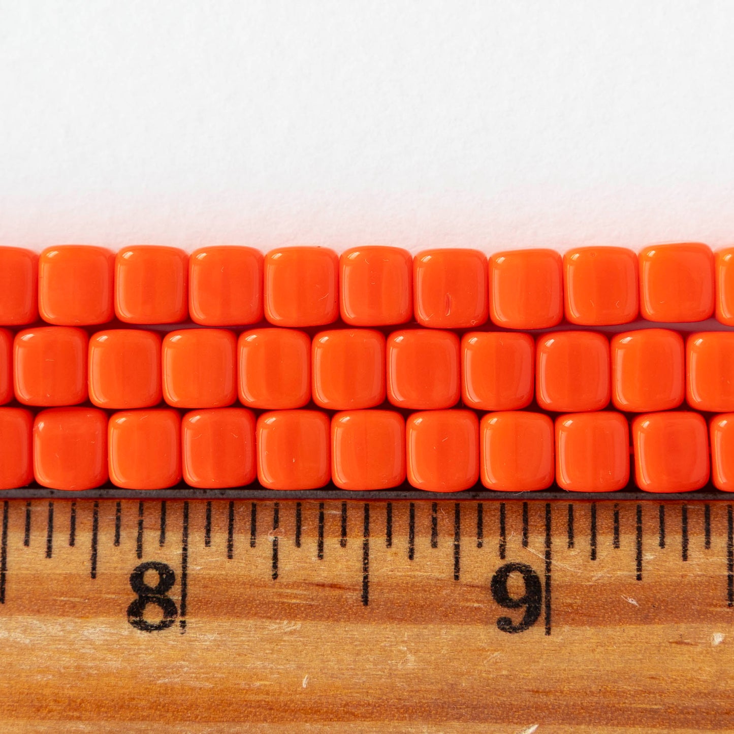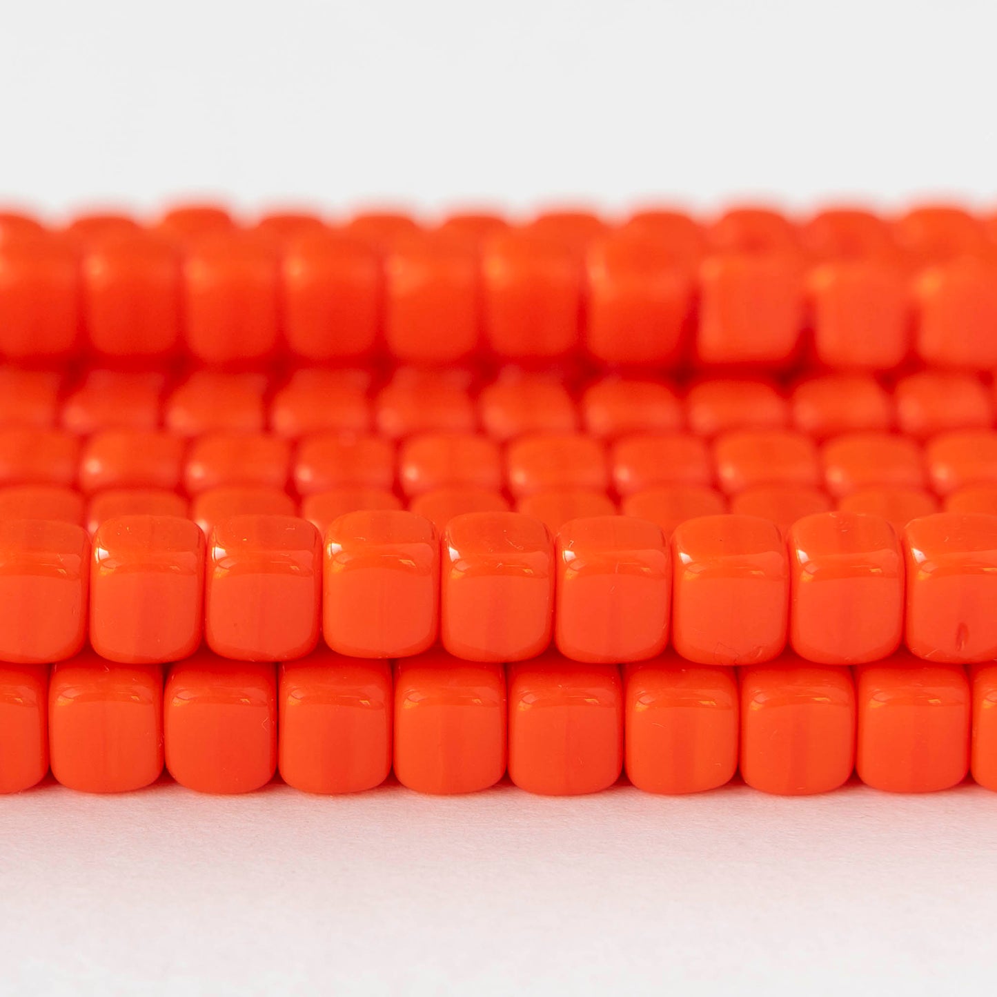 5x7mm Glass Cube Beads - Opaque Orange - 25 or 50 beads
